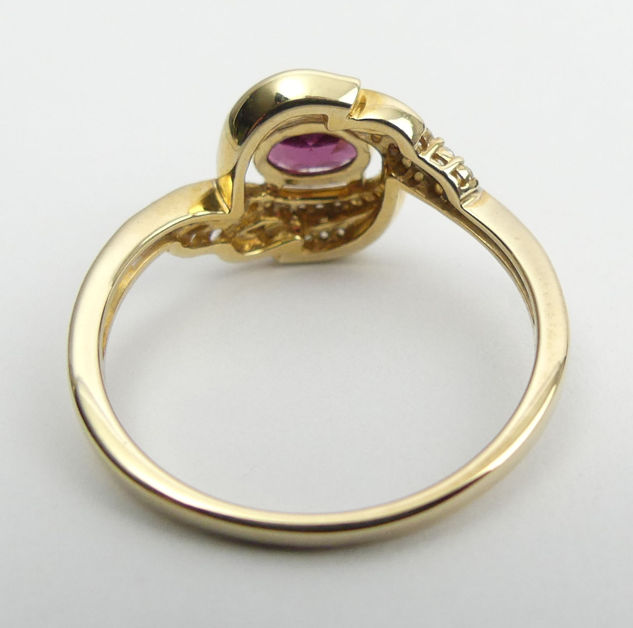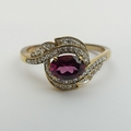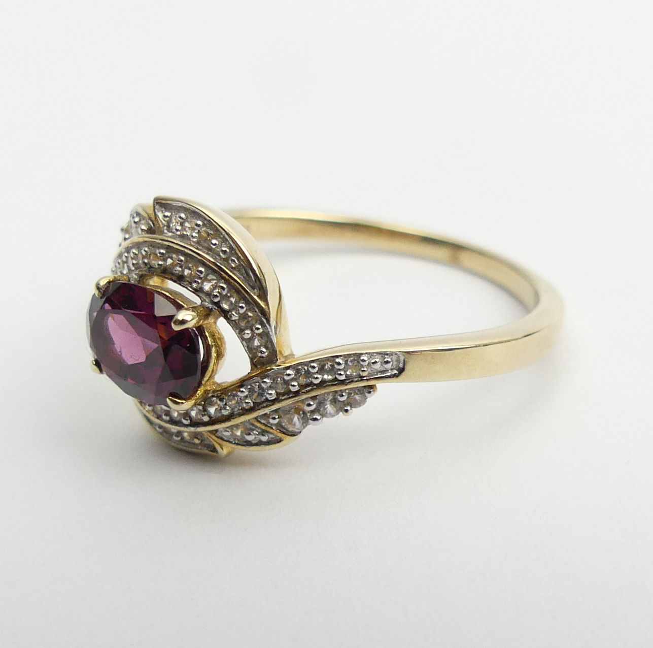 9ct gold rhodolite and white zircon ring, 3 grams. Size S. UK Postage £12.
