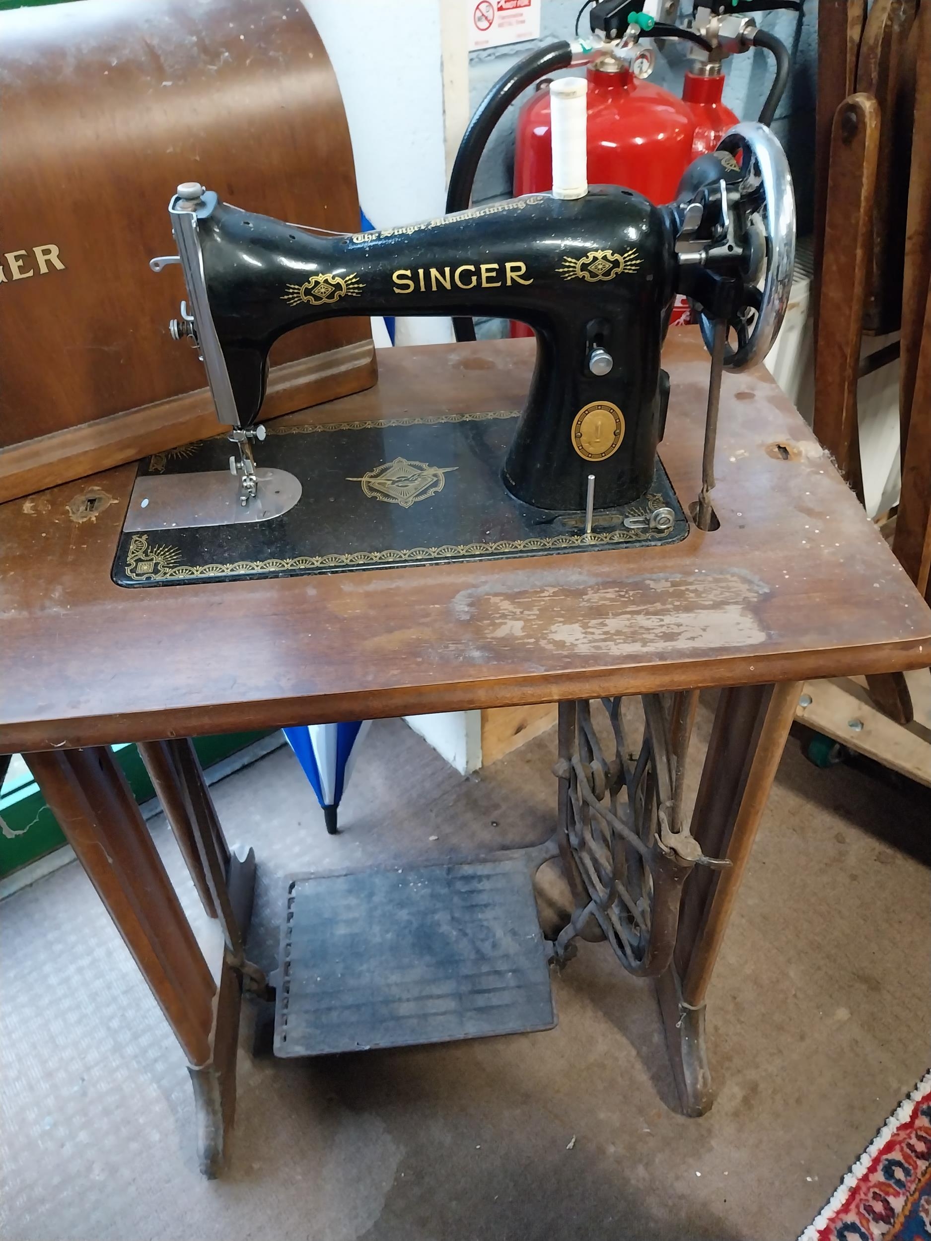 Singer Sewing Machine. {100 cm H x 77 cm W x 50 cm D}.