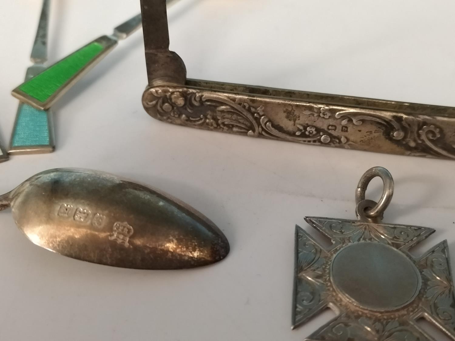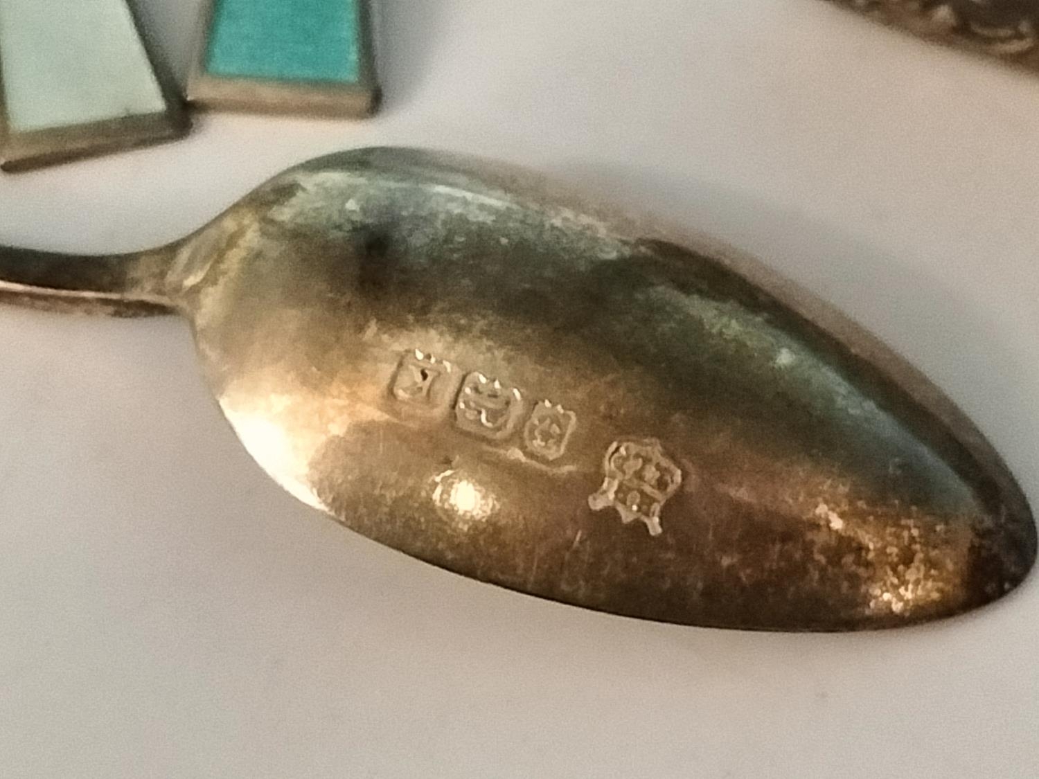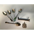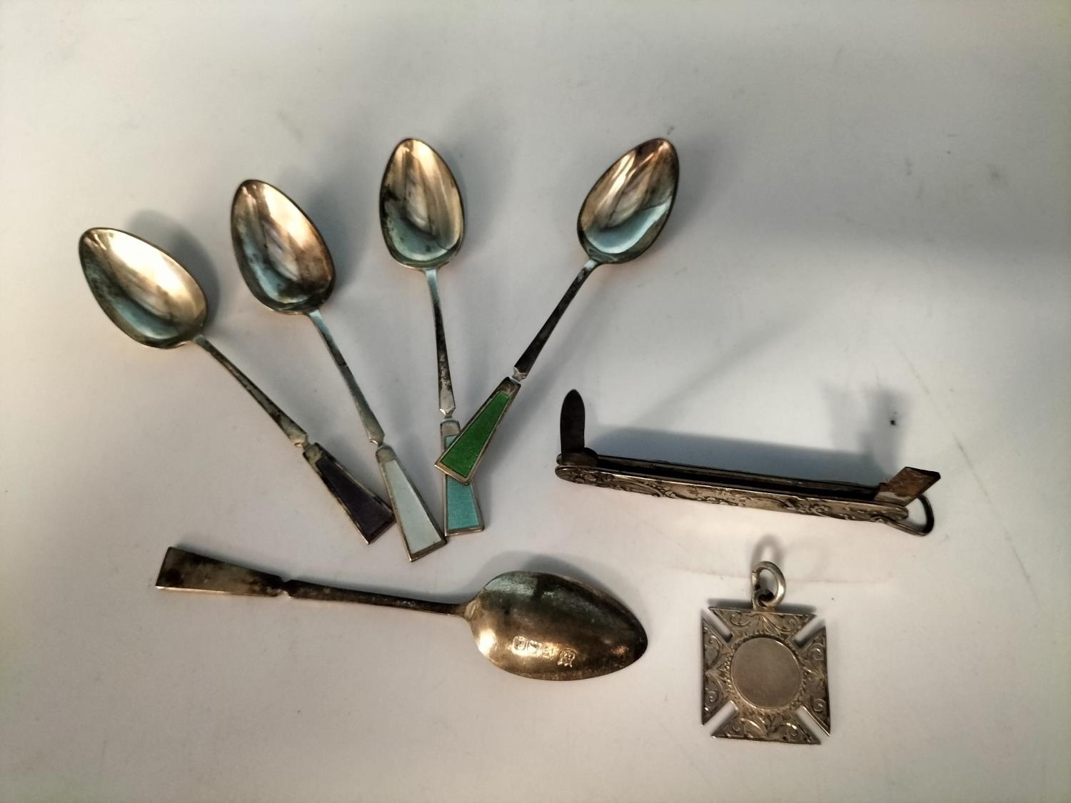 Silver Hallmarked Coffee Spoons, Watch Fob and Pen Knife (1 Blade A/F). 59 Grams.