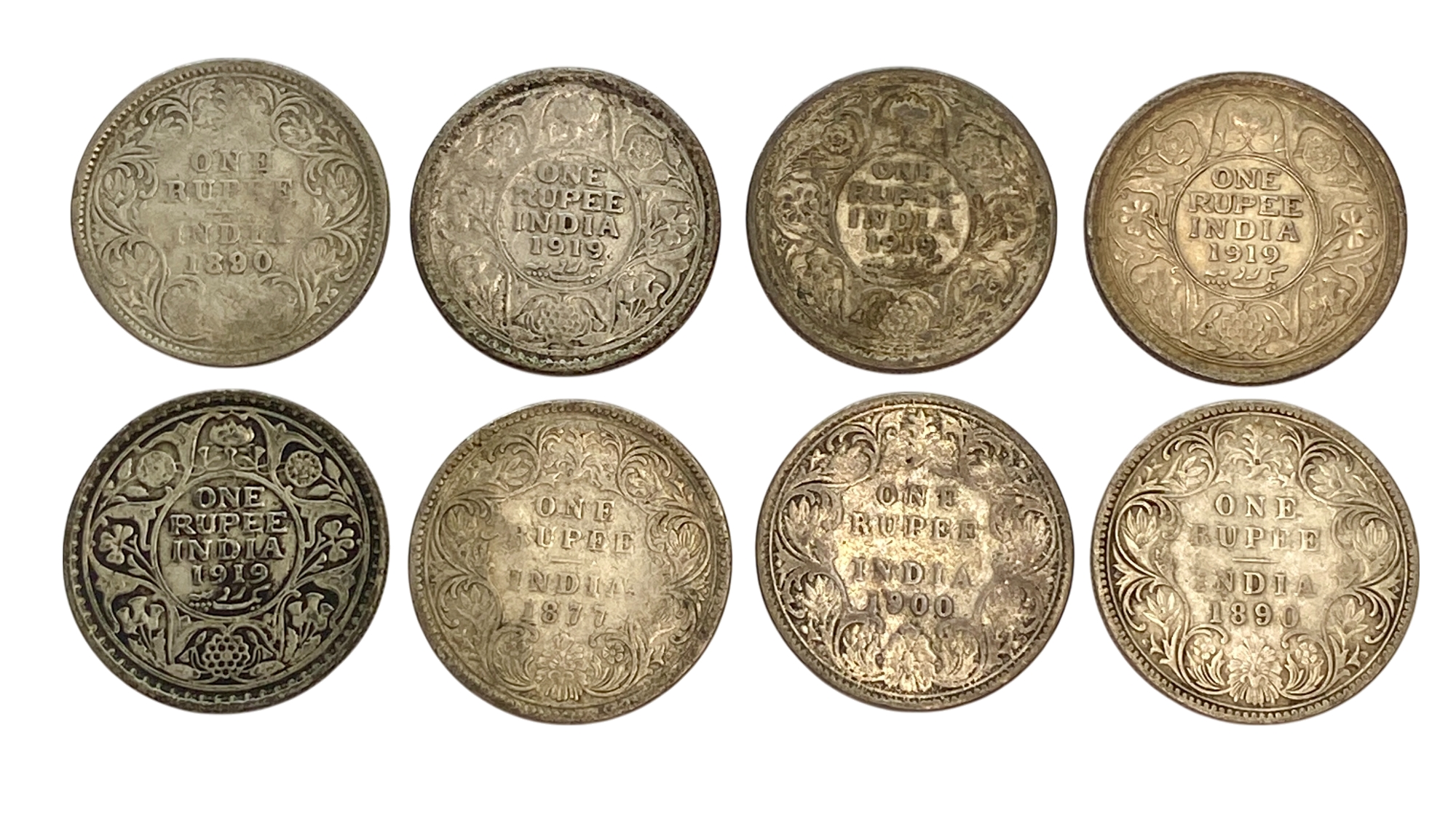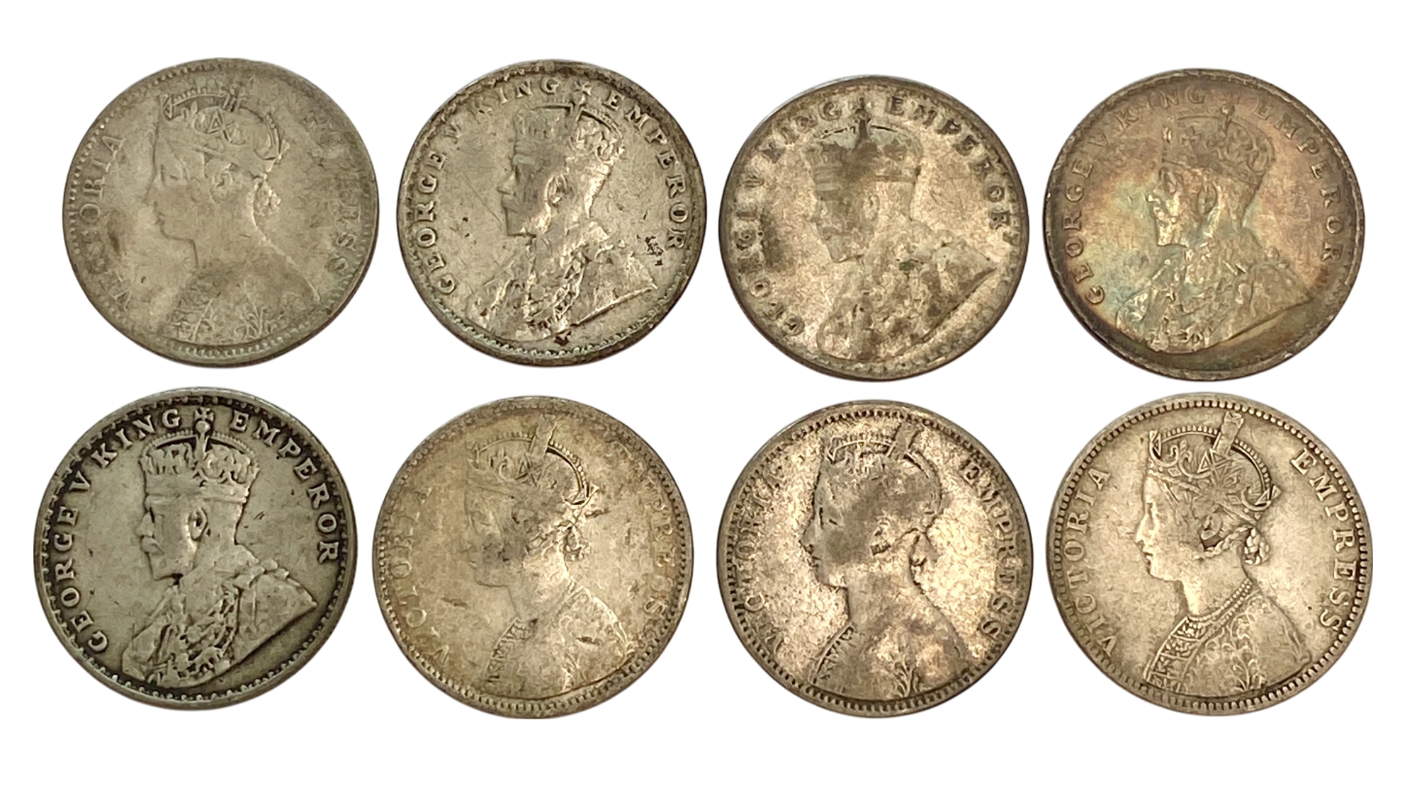 India Silver Rupees Victoria - George V, 8 coins in Total