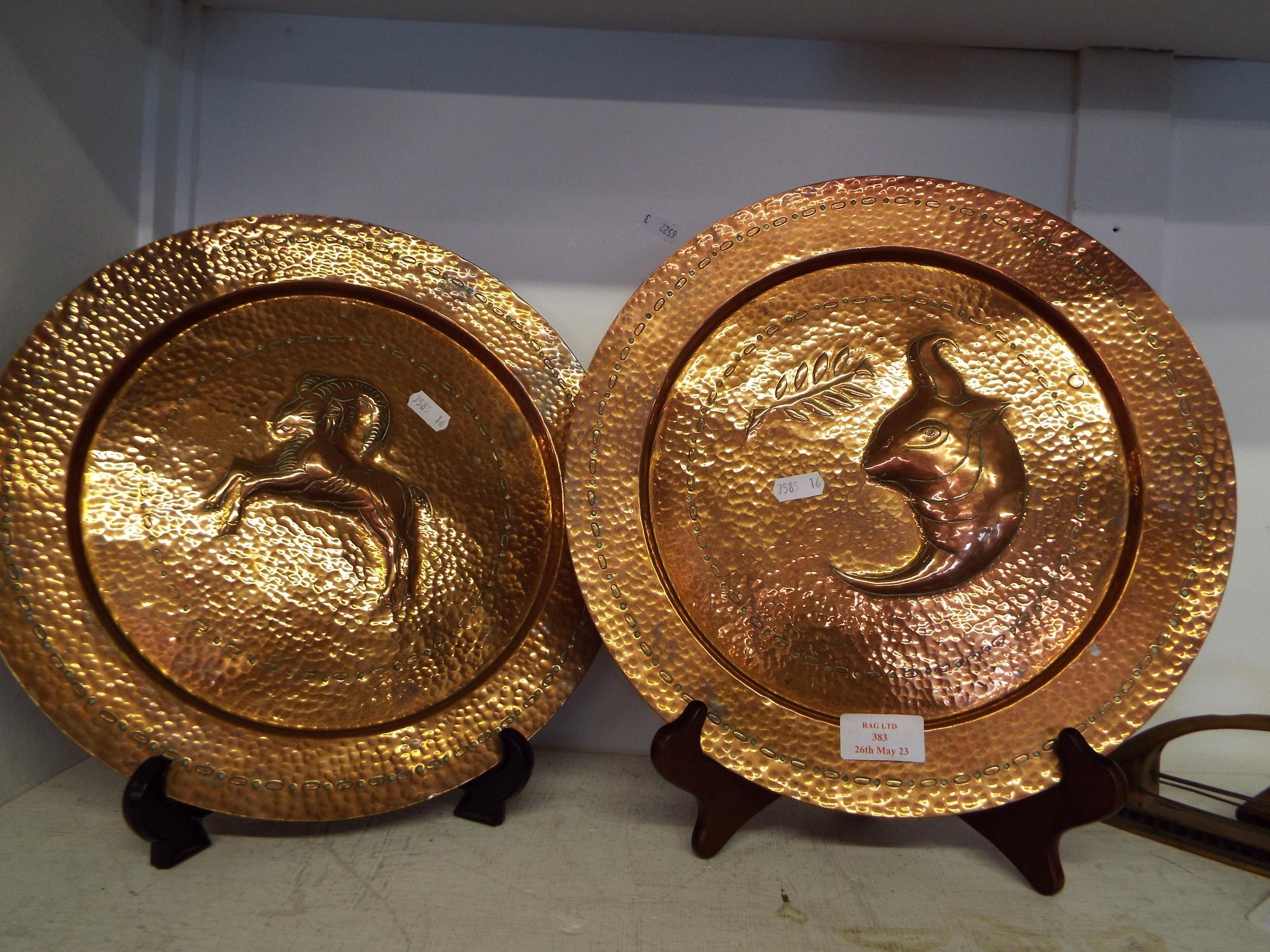 Two vintage Arts and Crafts beaten copper-ware plaques
