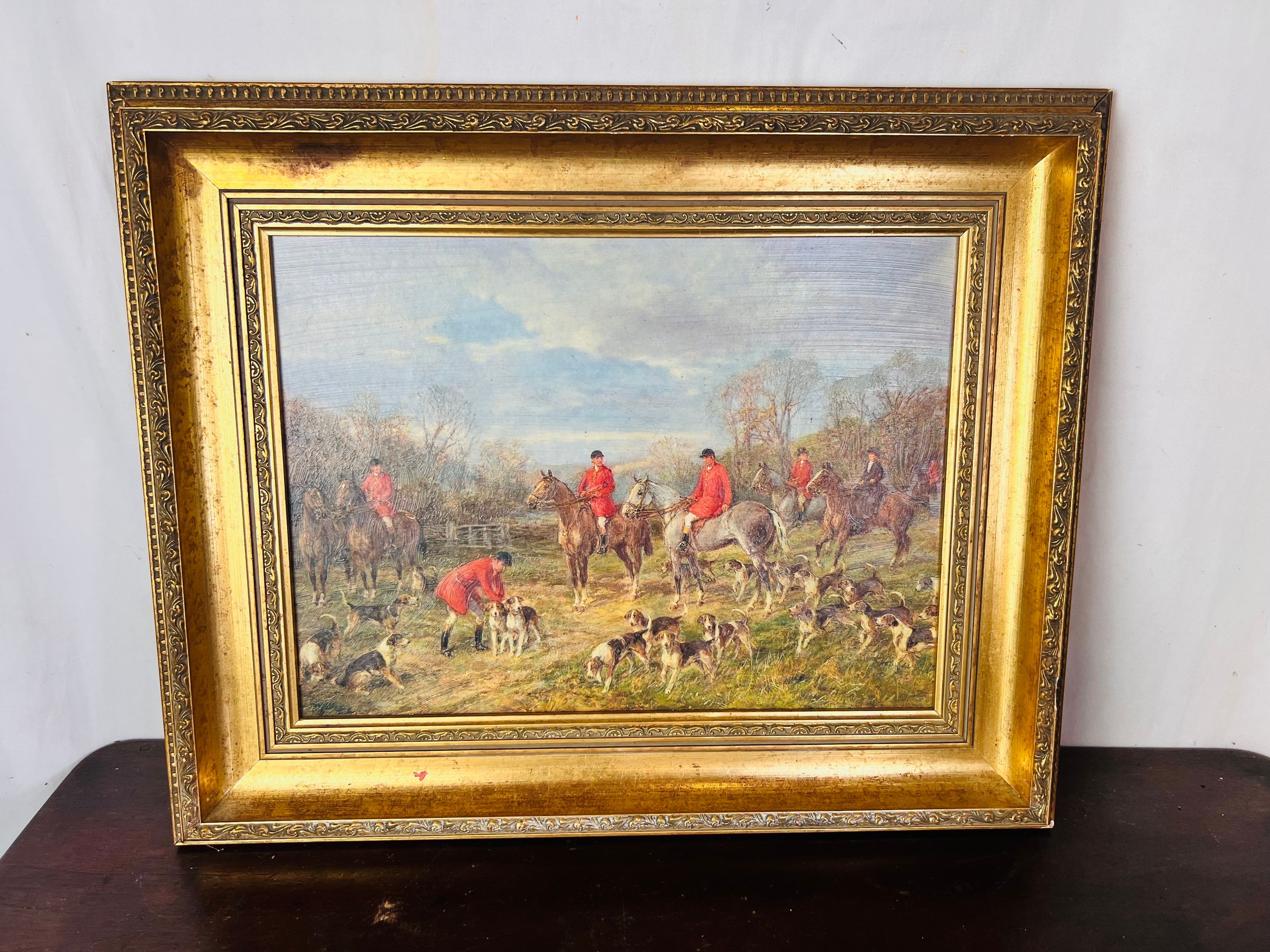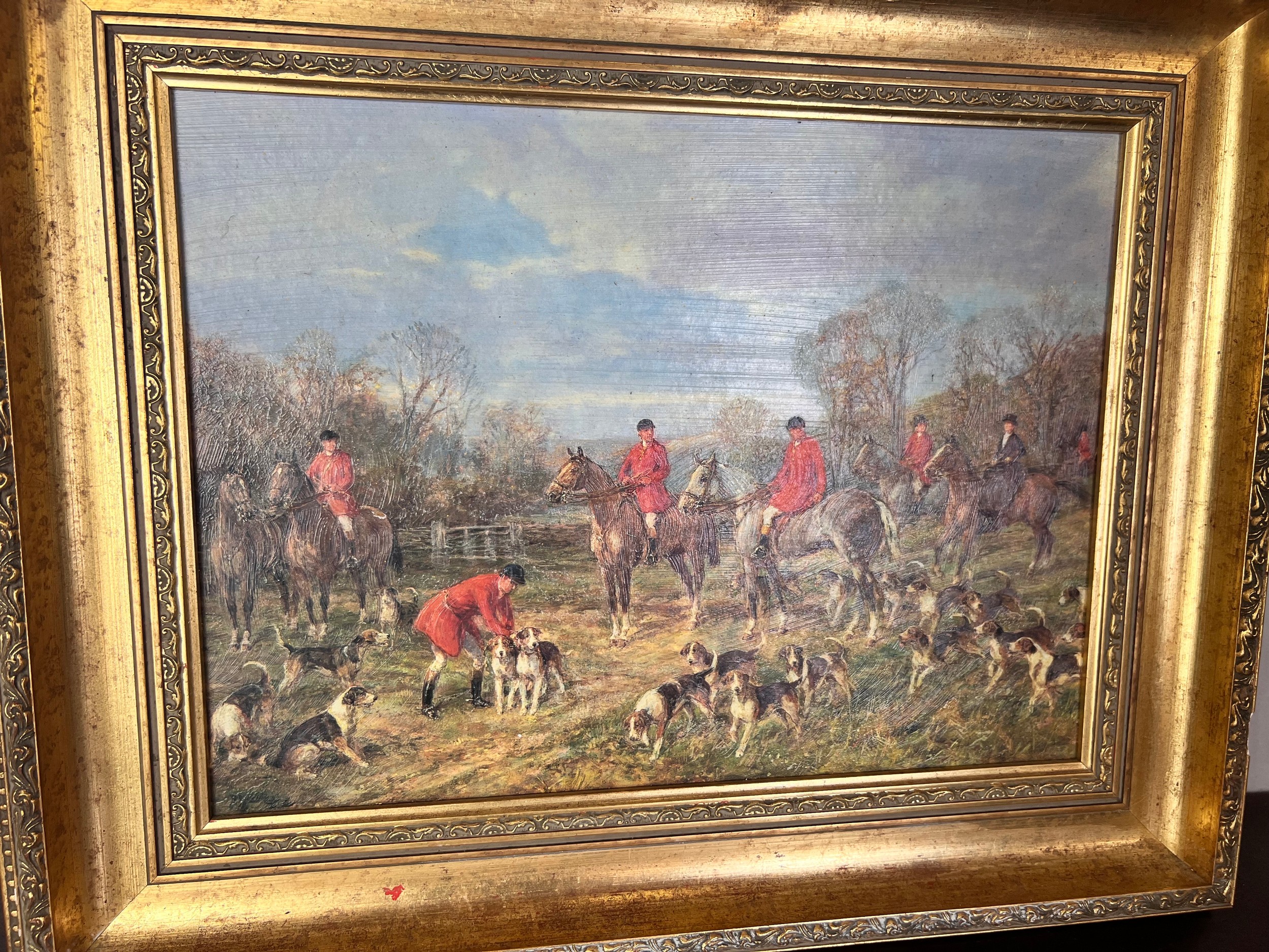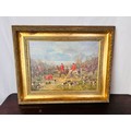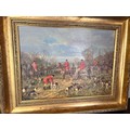 Victorian hunting scene, oil on board , labeled, 'The Hunt' gilt framed 21.5'' x 17.5''