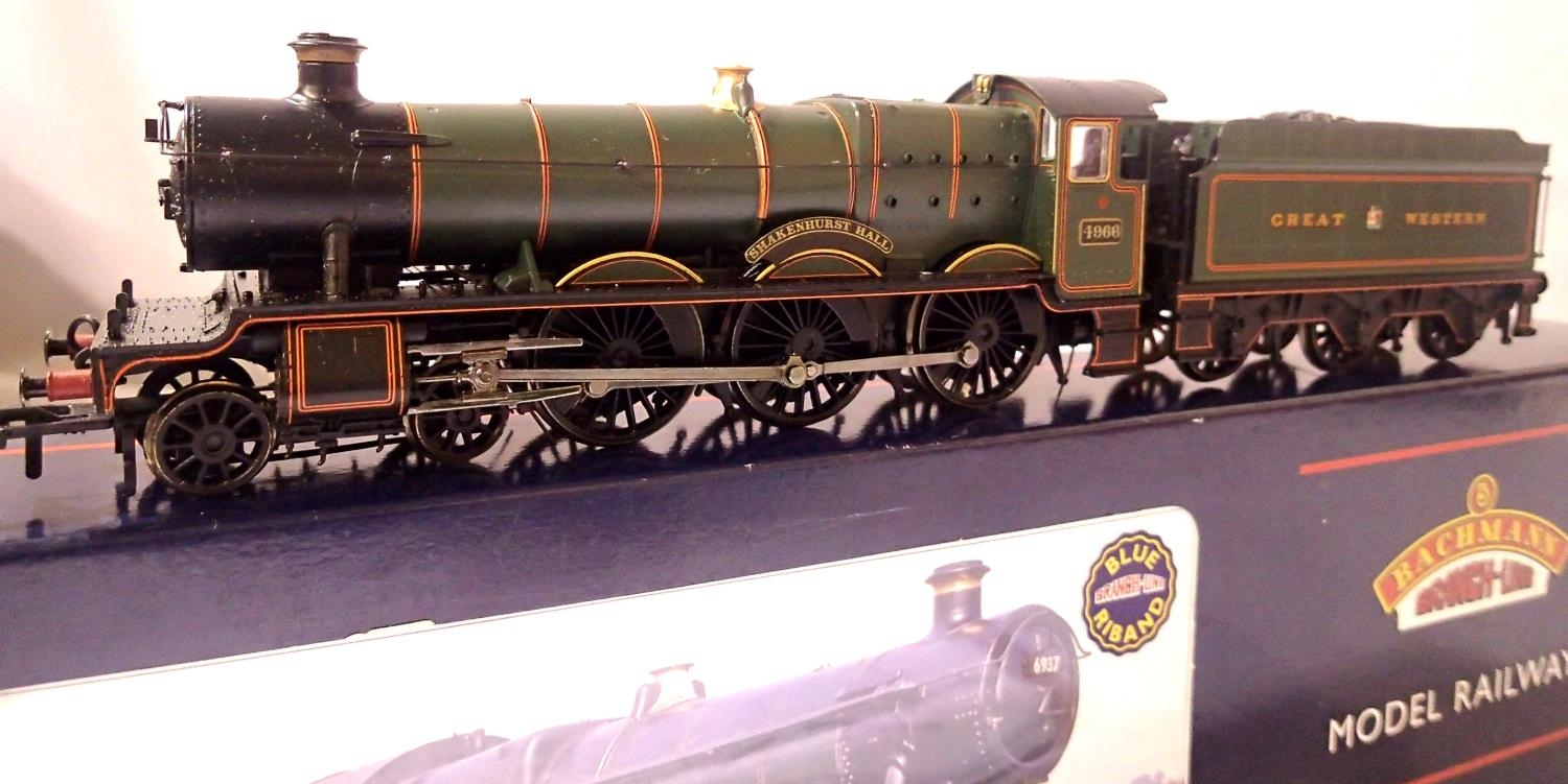 Bachmann Hall class, renamed/numbered Shakenhurst Hall, 4966, GWR Green, in very good to excellent condition, box with wear. P&P Group 1 (£14+VAT for the first lot and £1+VAT for subsequent lots)