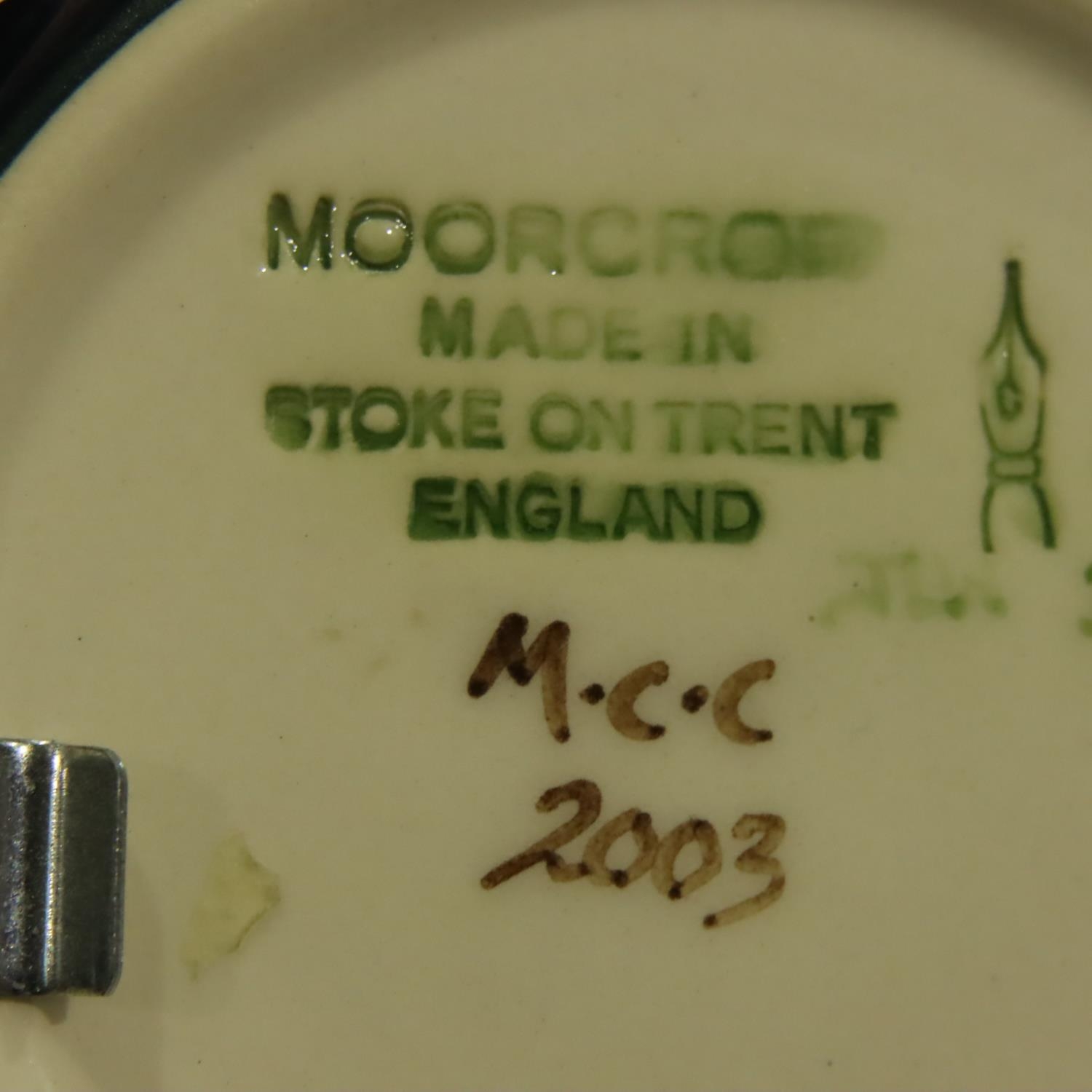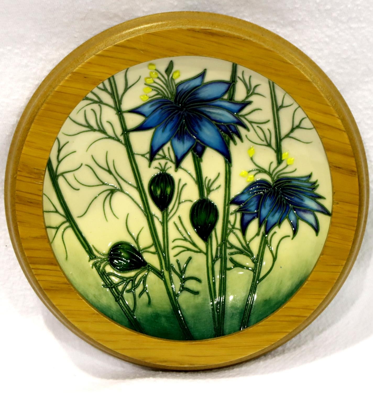 Moorcroft Collectors Club dish 2003, framed, D: 13 cm. No cracks, chips or visible restoration. P&P Group 1 (£14+VAT for the first lot and £1+VAT for subsequent lots)