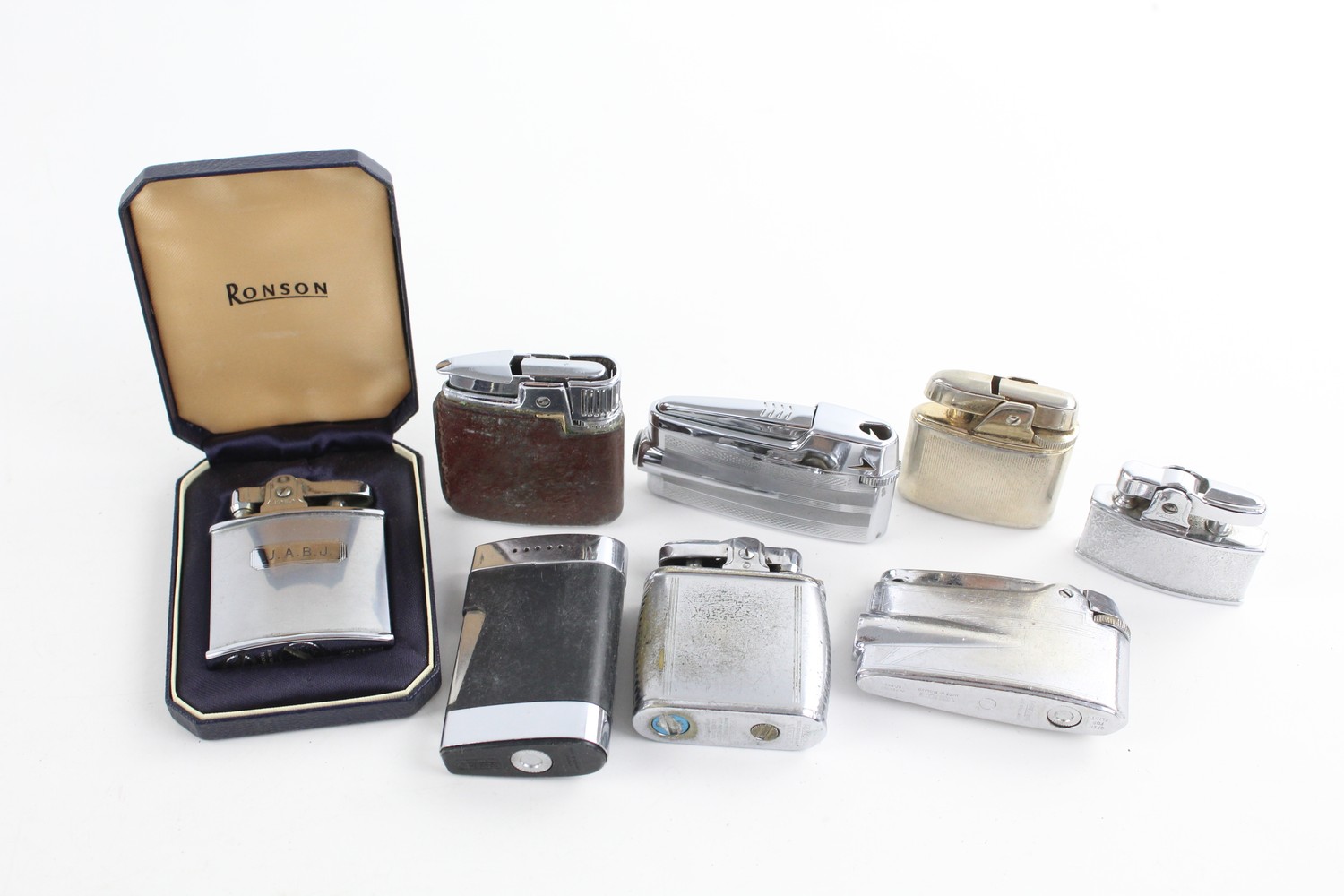8 x Vintage RONSON Cigarette LIGHTERS Inc Varaflame, Viking, Boxed Etc