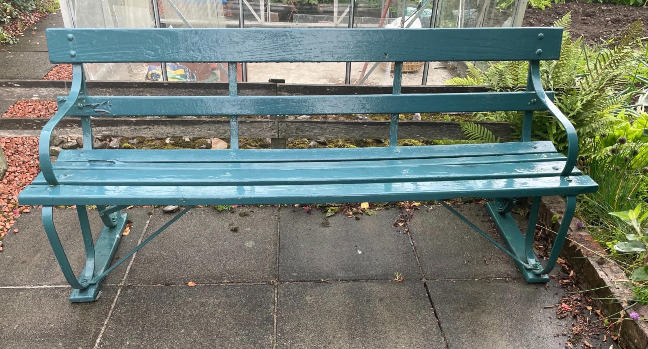 A nice c1929's garden seat with nice IRON TURNED RESTS