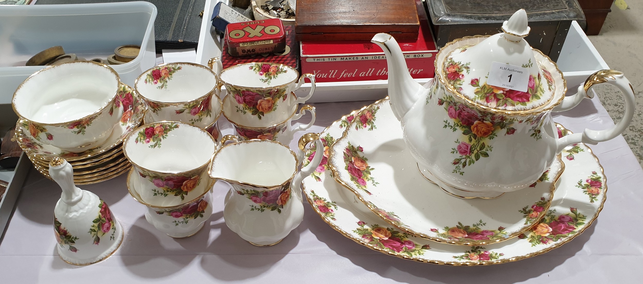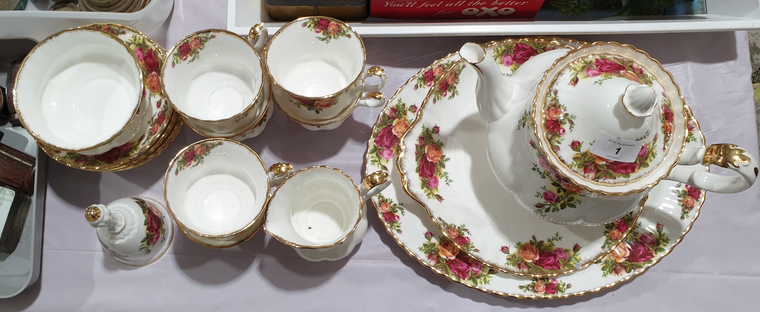 Nineteen pieces of Old Country Roses including teapot, one cup A/F. No in house shipping. Please arrange your own collection or packing and shipping.