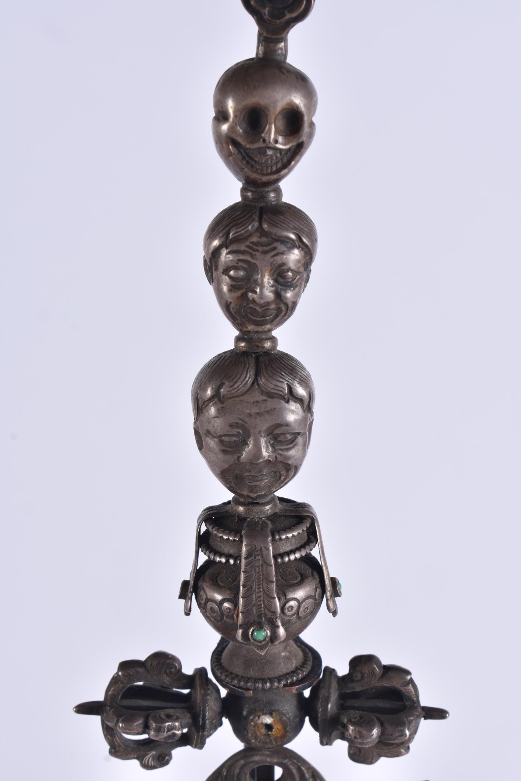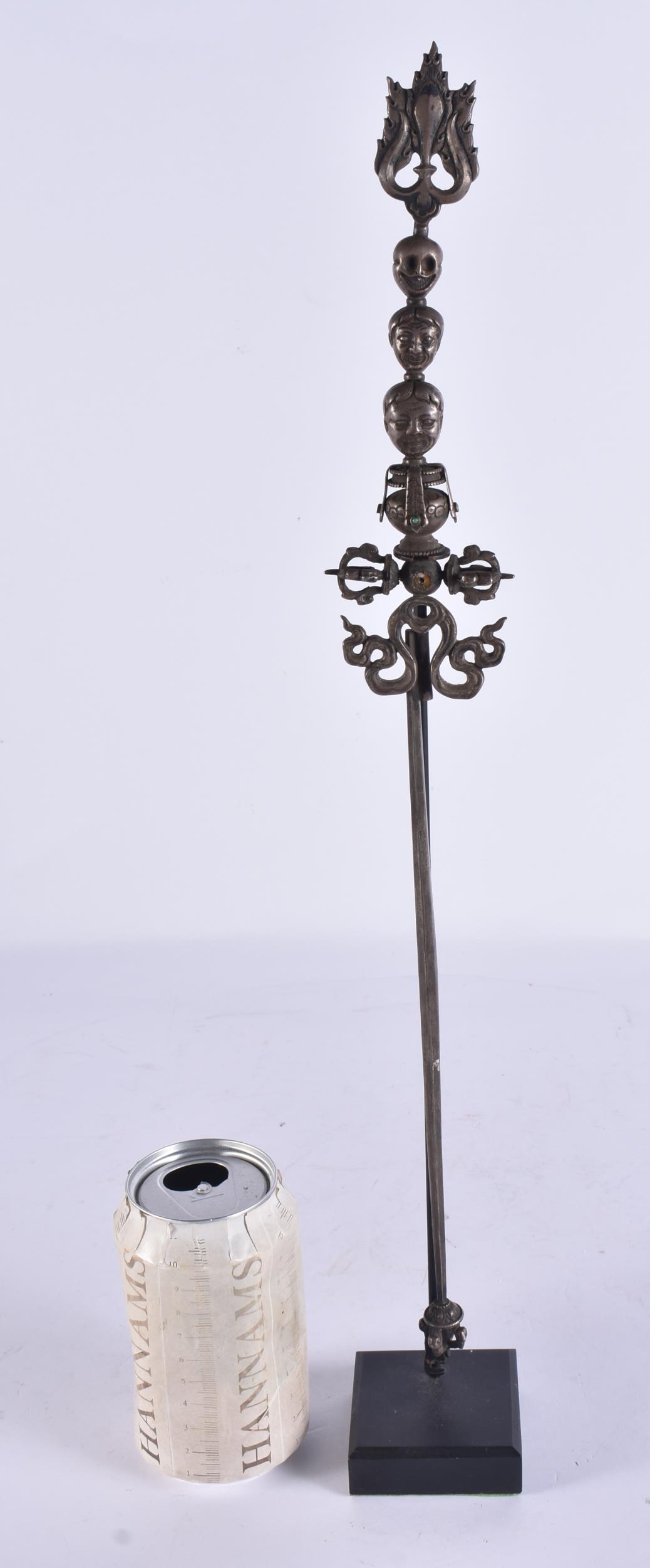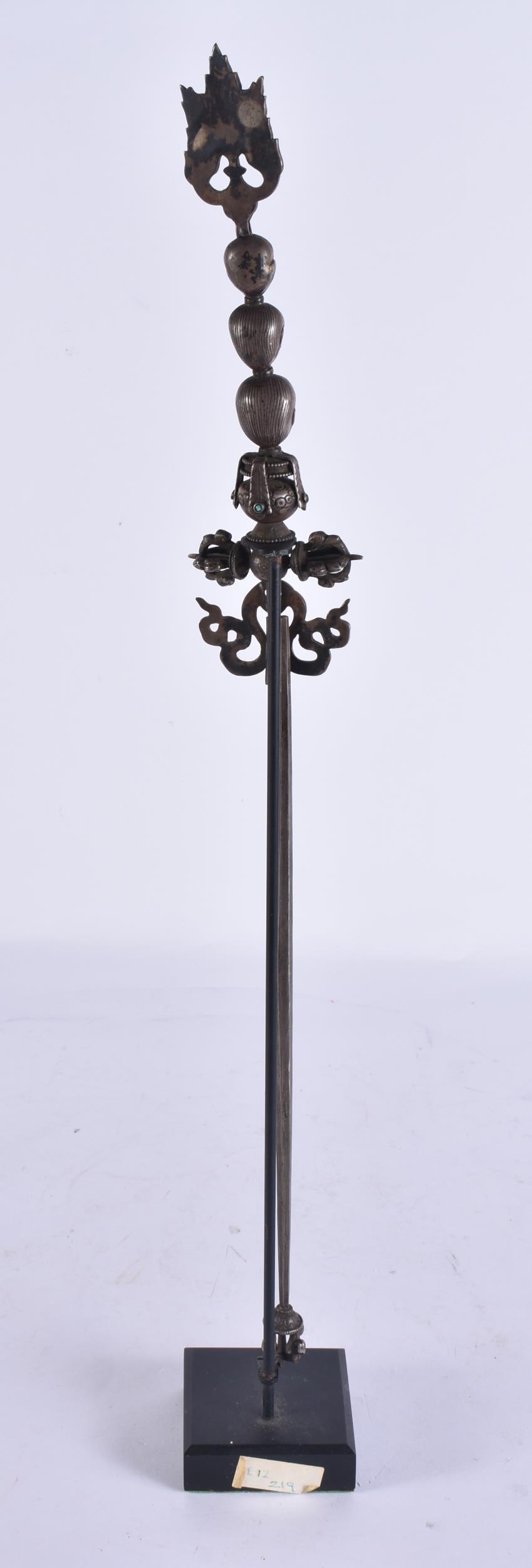 AN 18TH/19TH CENTURY TIBETAN TURQUOISE INSET SILVER SCEPTRE. 47 cm high.
