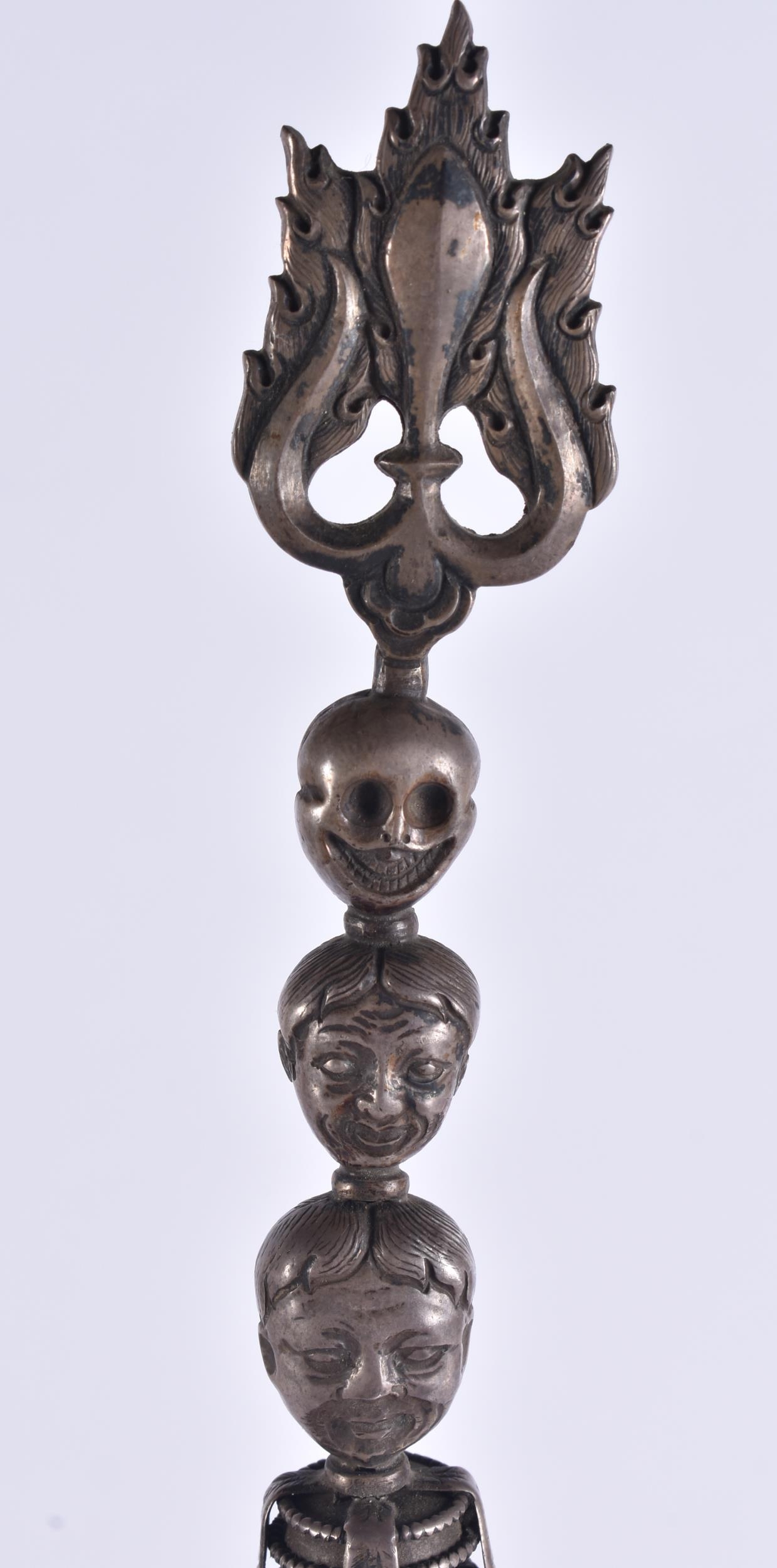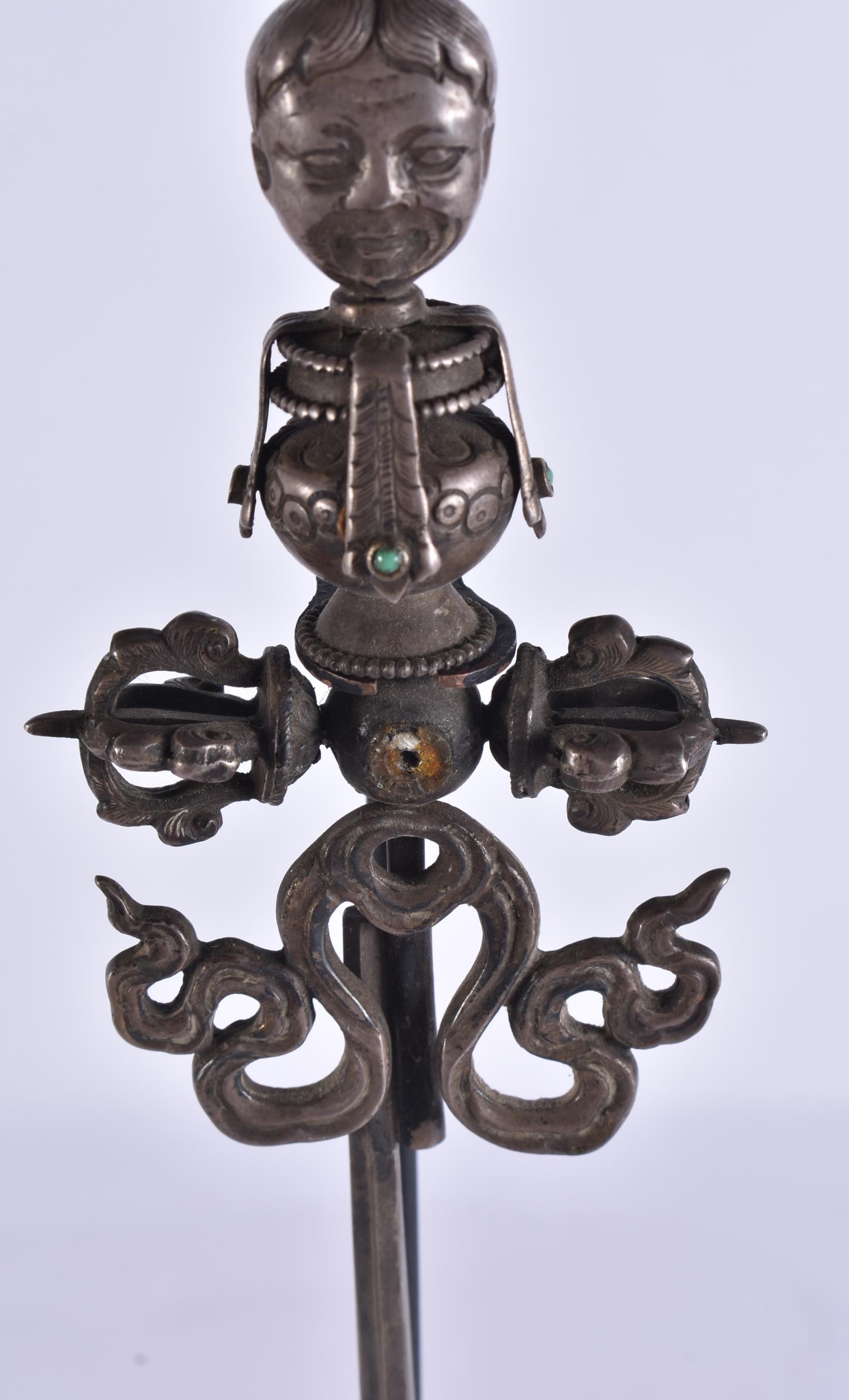 AN 18TH/19TH CENTURY TIBETAN TURQUOISE INSET SILVER SCEPTRE....