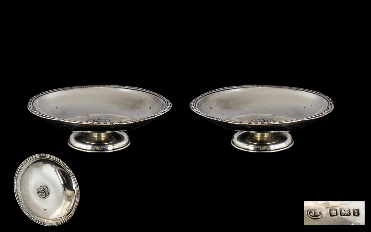 Edwardian Period Pair of Silver Sweetmeat Footed Small Dishes. Hallmark Sheffield 1911, Maker Joseph Rogers - J.R. 4.25 Inches - 11.20 cm Diameter.