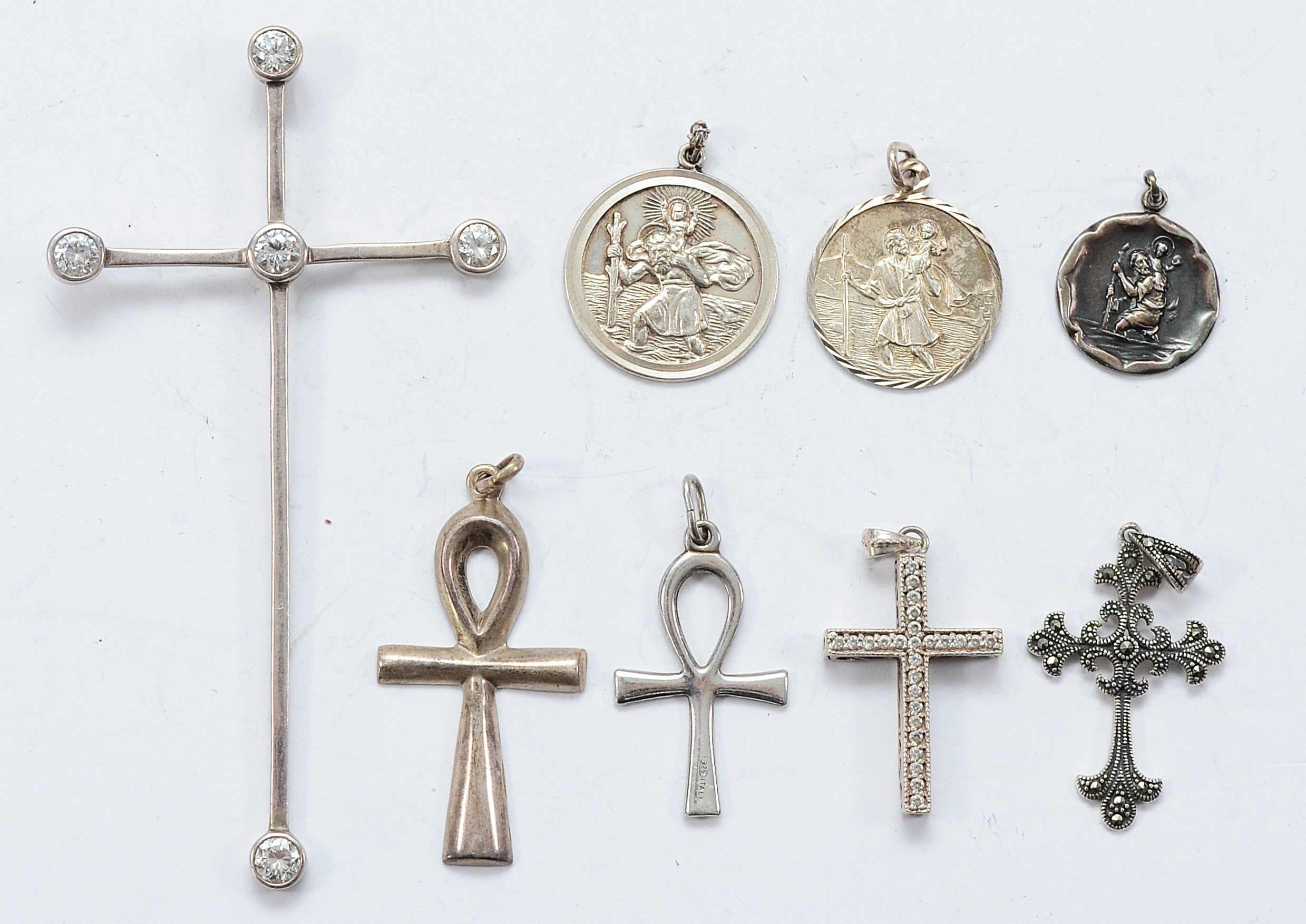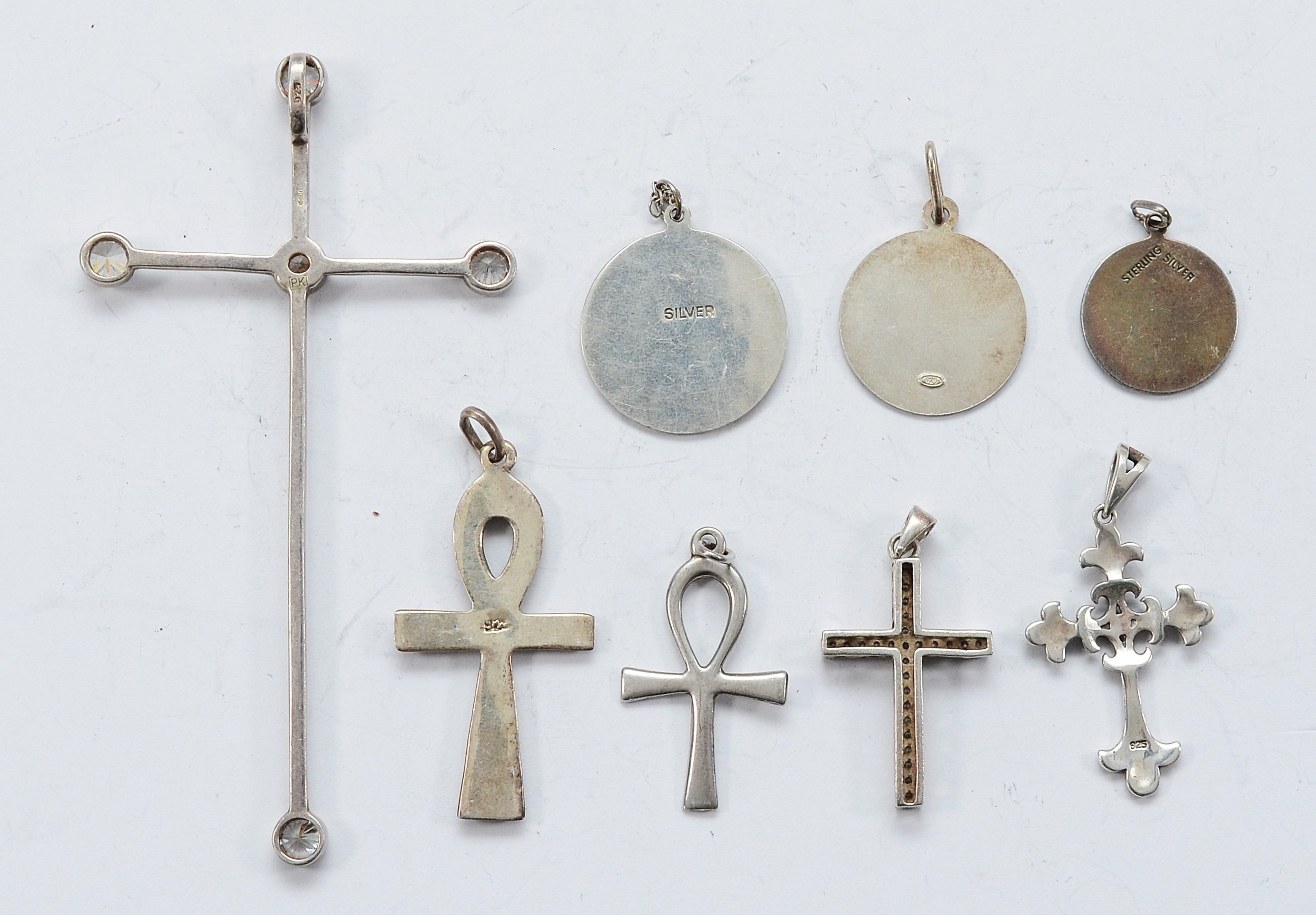 Five 925 silver pendants, two sterling silver pendants, and an unmarked silver pendant, 29g