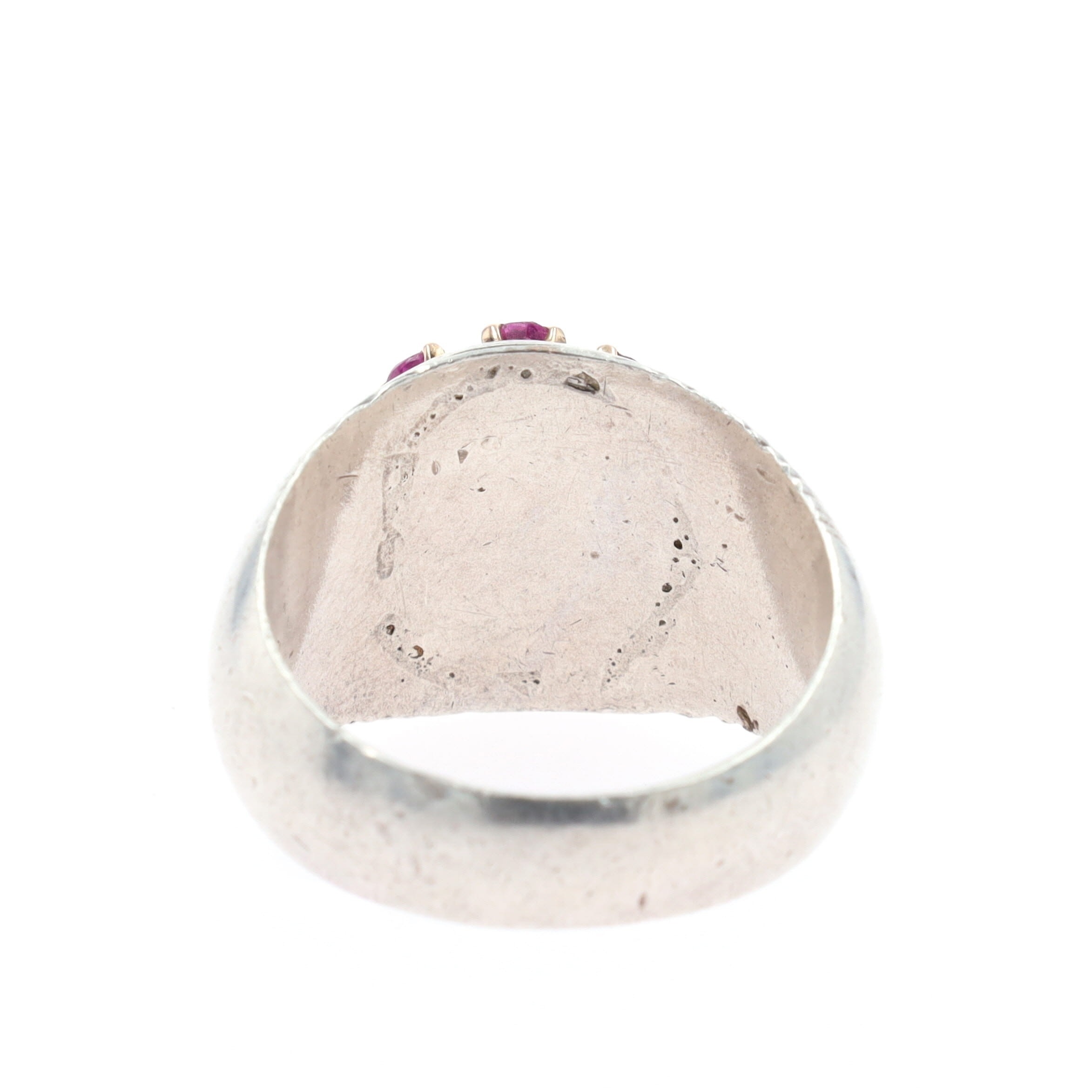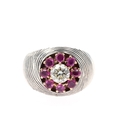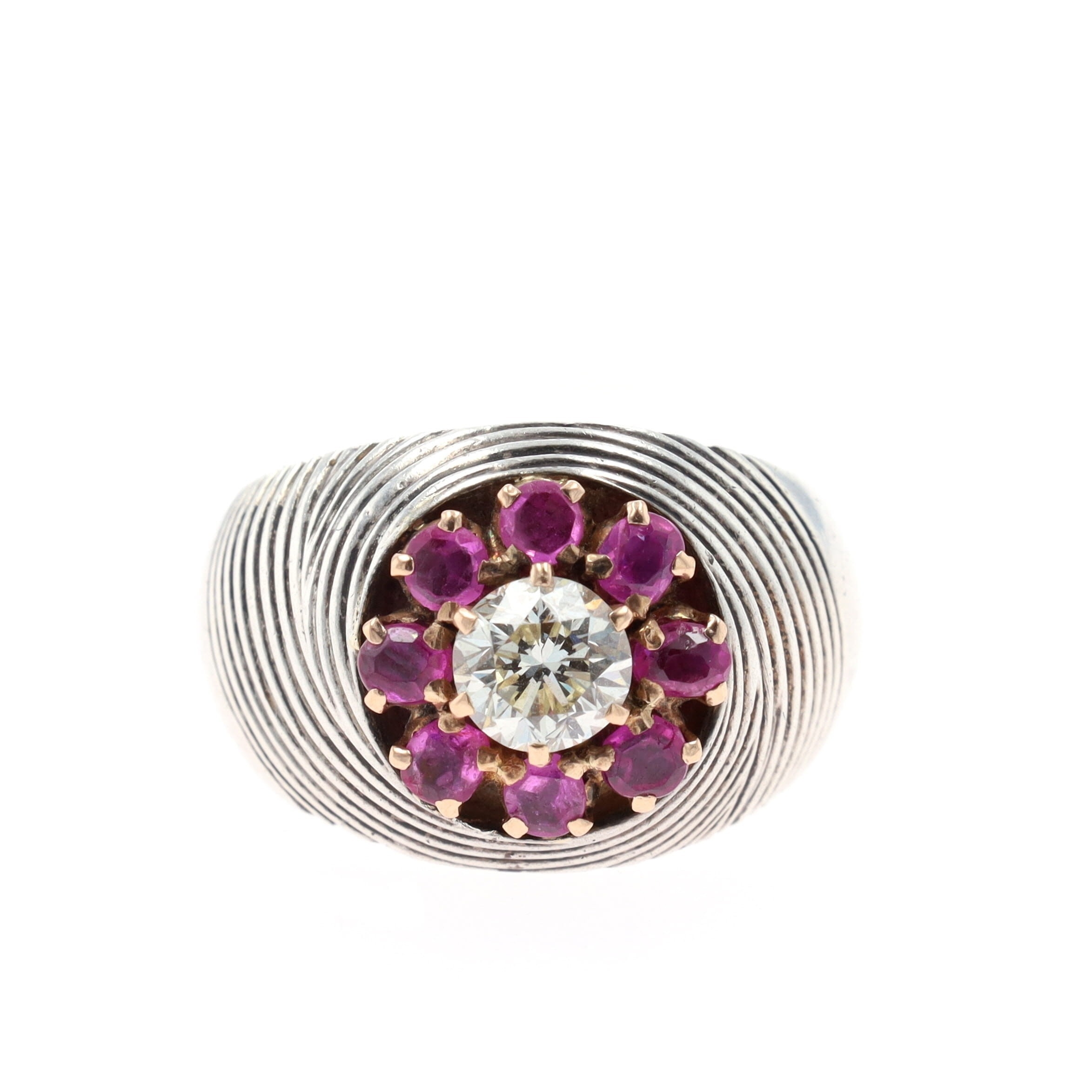 Diamond and Ruby Silver Dress Ring with Gold Setting