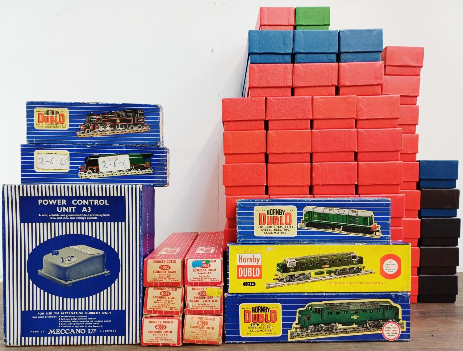 A large quantity of model railway storage boxes, twelve being original Hornby Dublo
