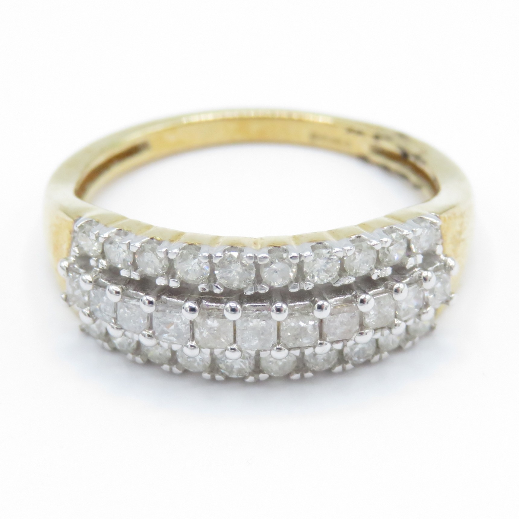 9ct Gold Diamond Three Row Vari-Cut Ring (3.5g) Size P
