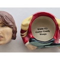 Two Peggy Davies/Kevin Francis pottery small Face Pots.George Harrison & Mick Jagger. Hand made and hand painted, with a motto inside PLUS Count Arthur Strong programme. All excellent condition