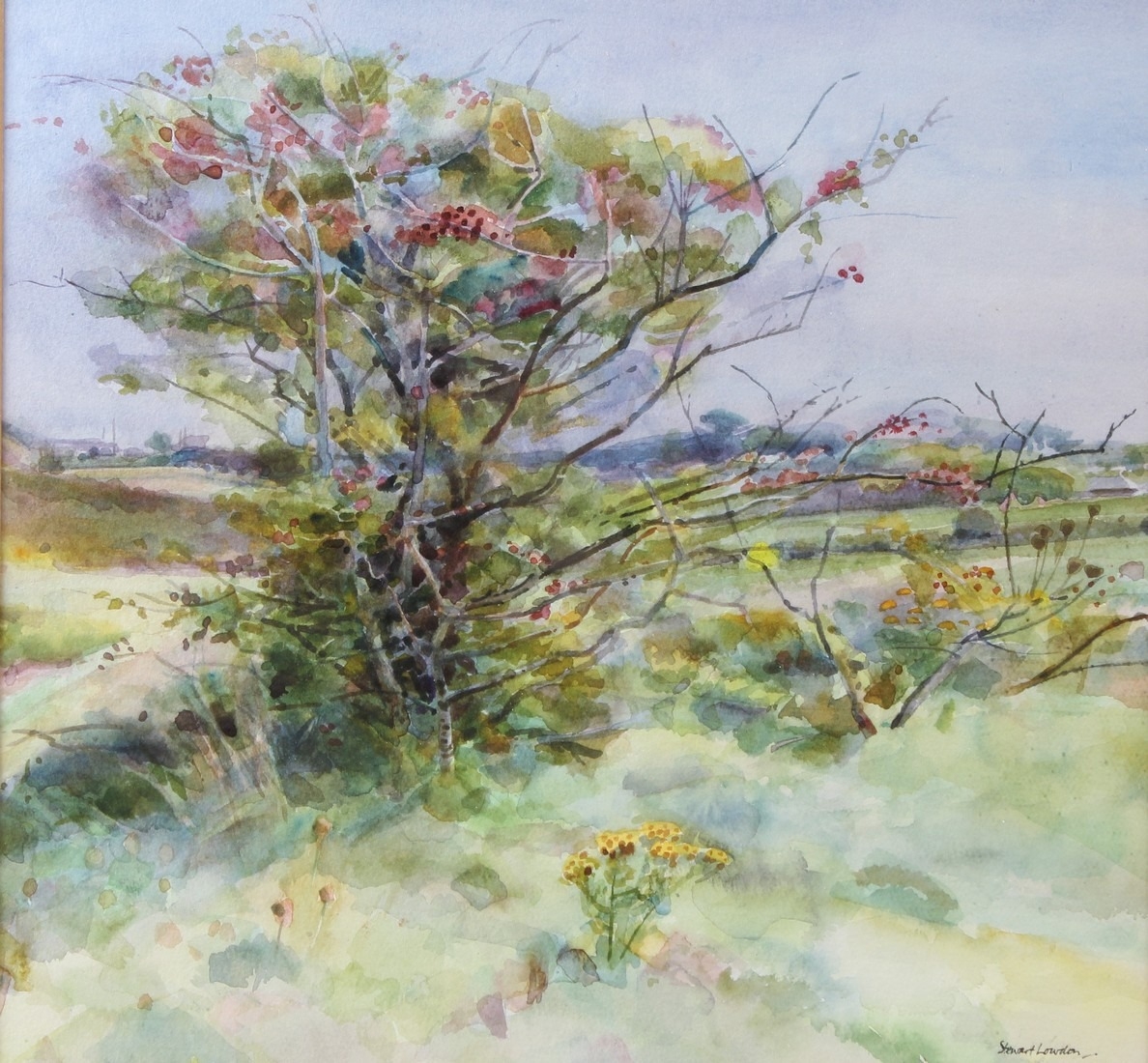 STEWART LOWDON 'Hawthorne and Ragwort, St Enodoc' watercolour signed artists label verso 34.5 x 36.5cm