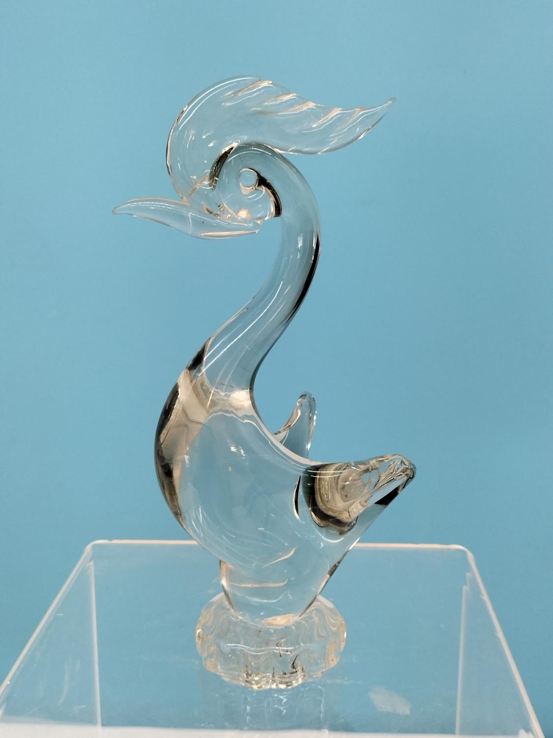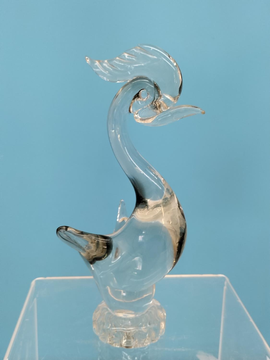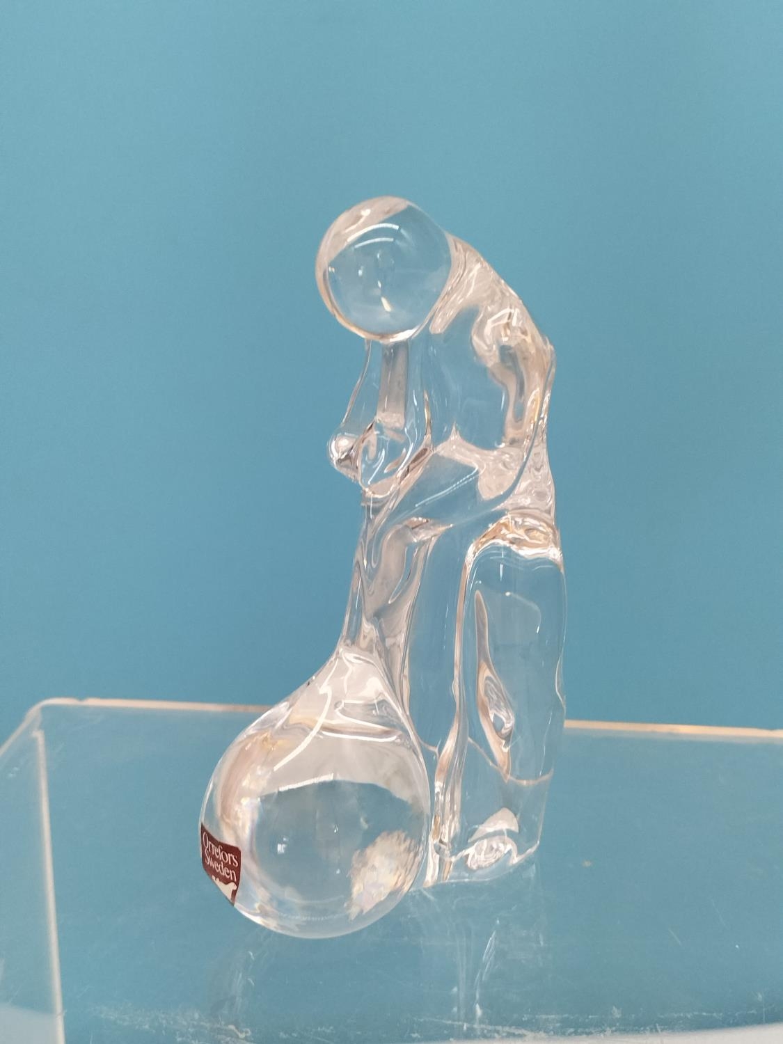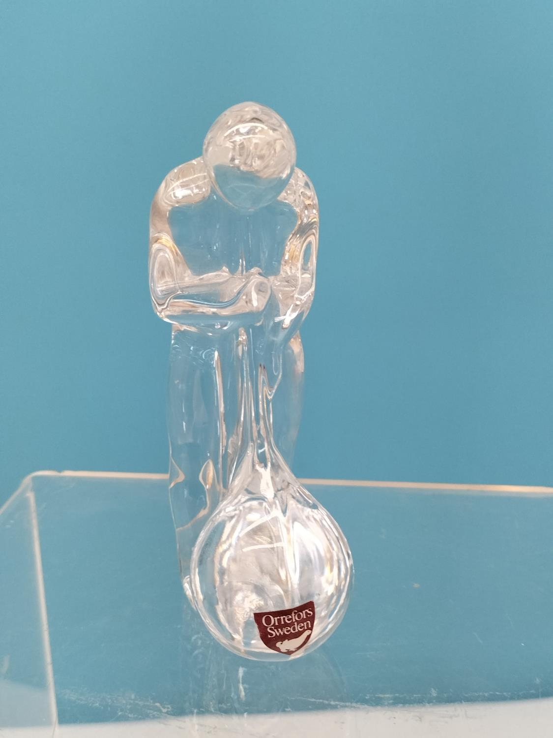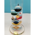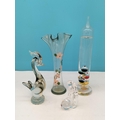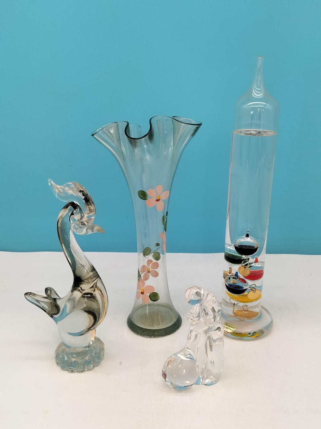 Collection of Glass Ware Items (4) to include Orrefors Glass Blower Figure, Murano Bird, German Made Galileo Thermometer and a Hand Painted Fluted Vase.