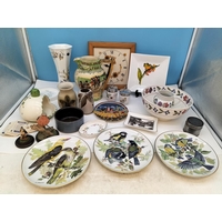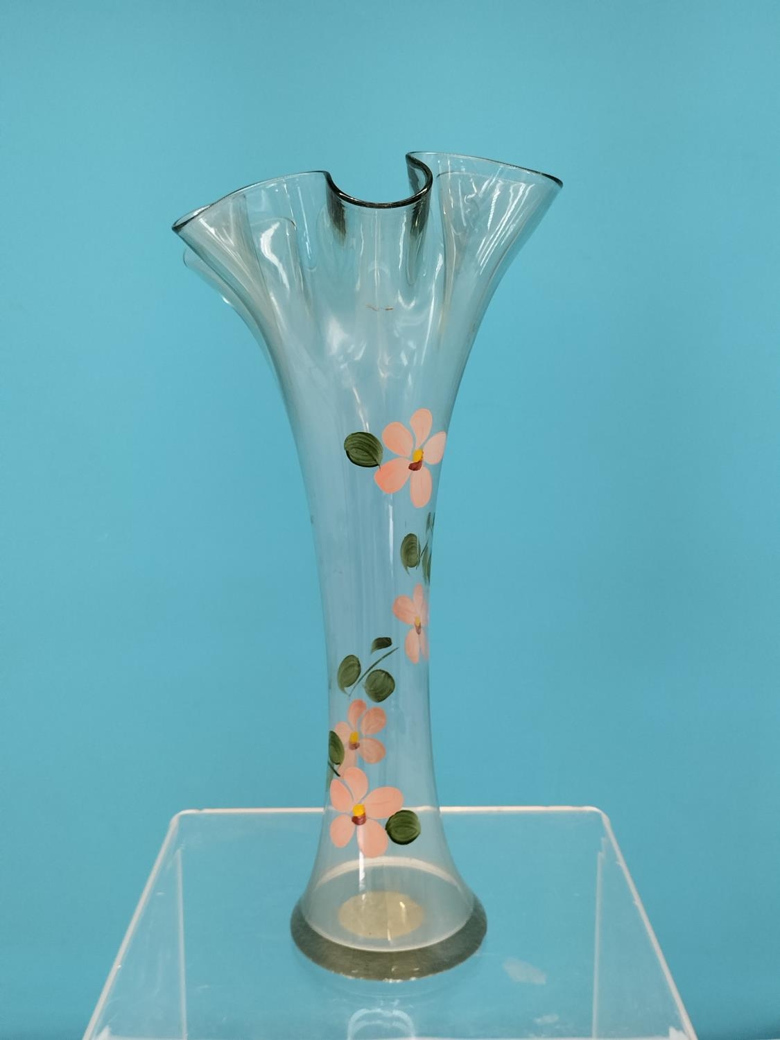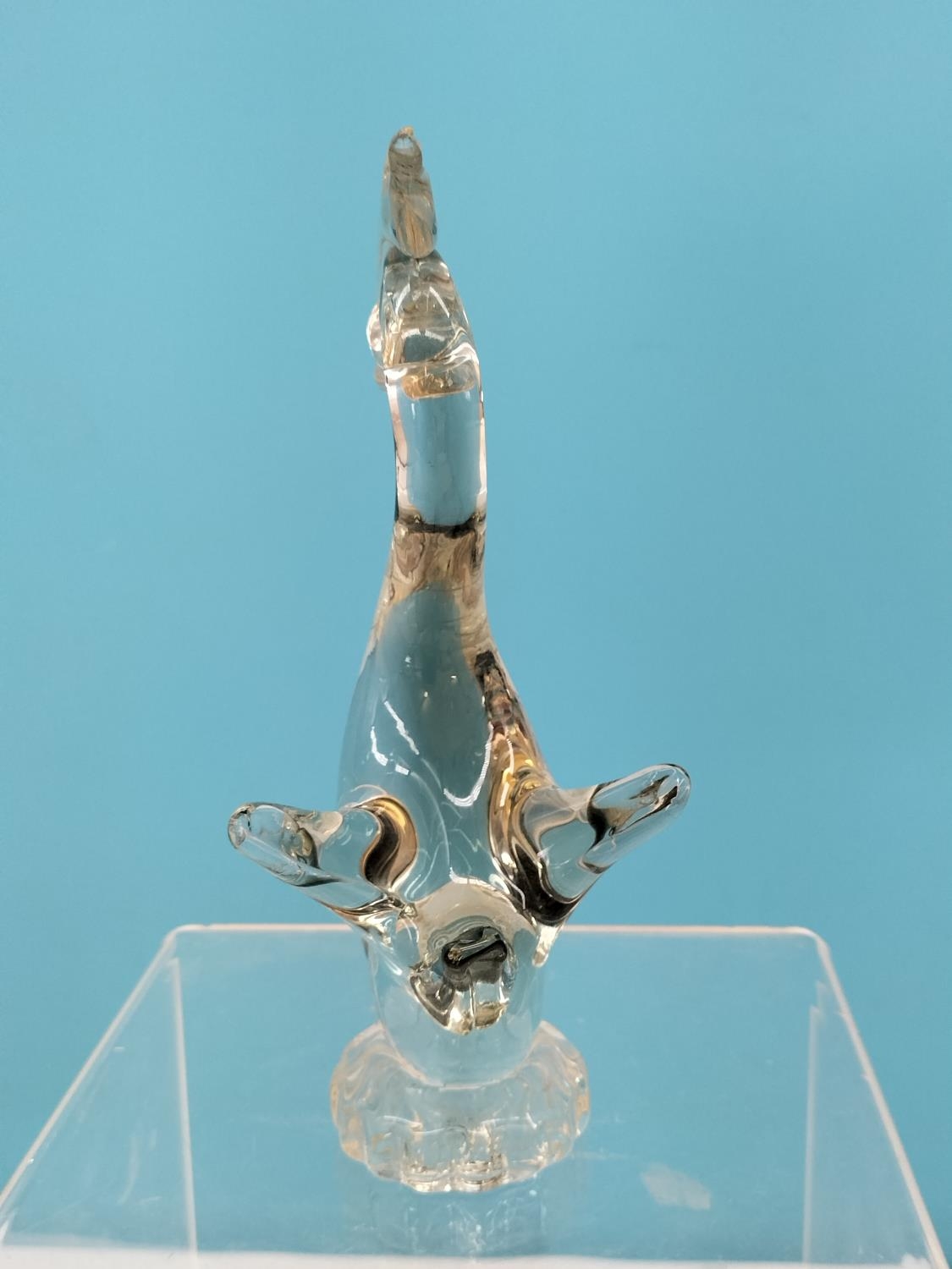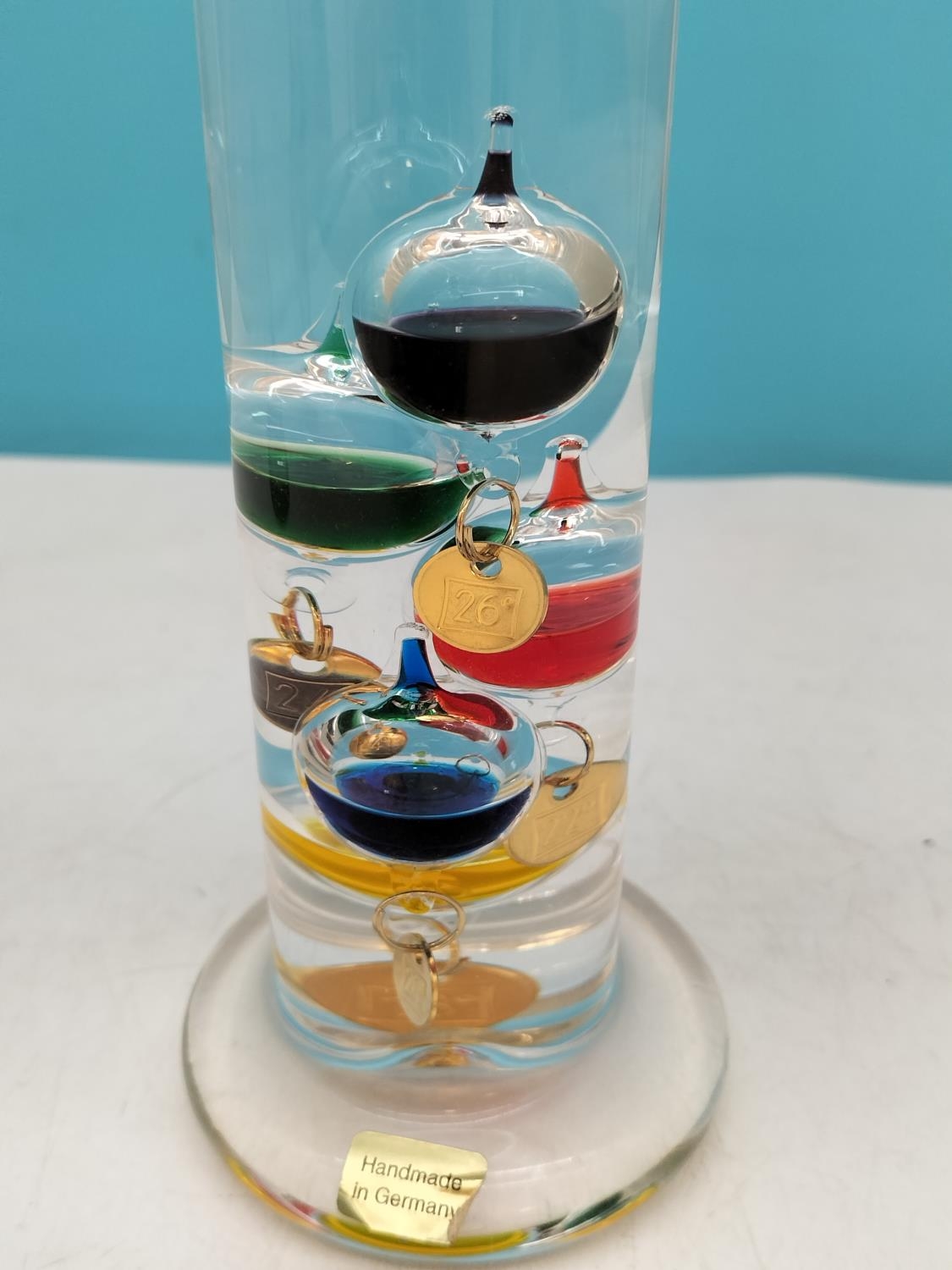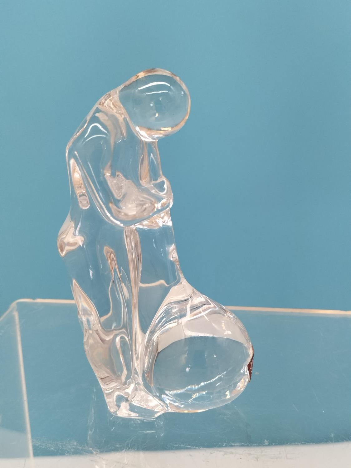 Collection of Glass Ware Items (4) to include Orrefors Glass Blower Figure, Murano Bird, German Made Galileo Thermometer and a Hand Painted Fluted Vase.