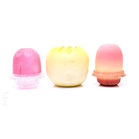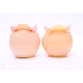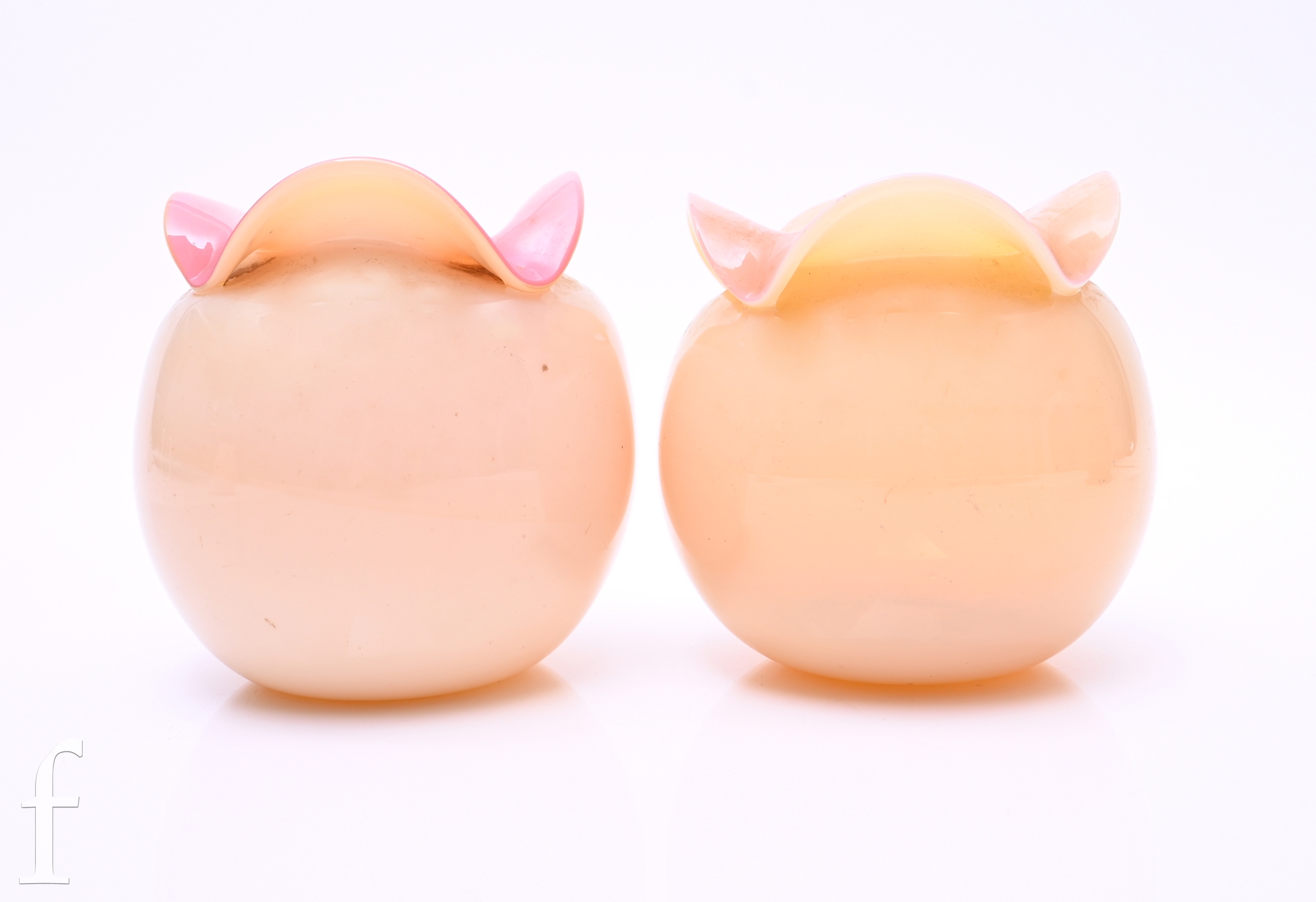 A 19th Century globe form vase with nipped and folded everted rim, uranium opal over graded pink, height 9cm, and another in uranium over pale pink. (2)