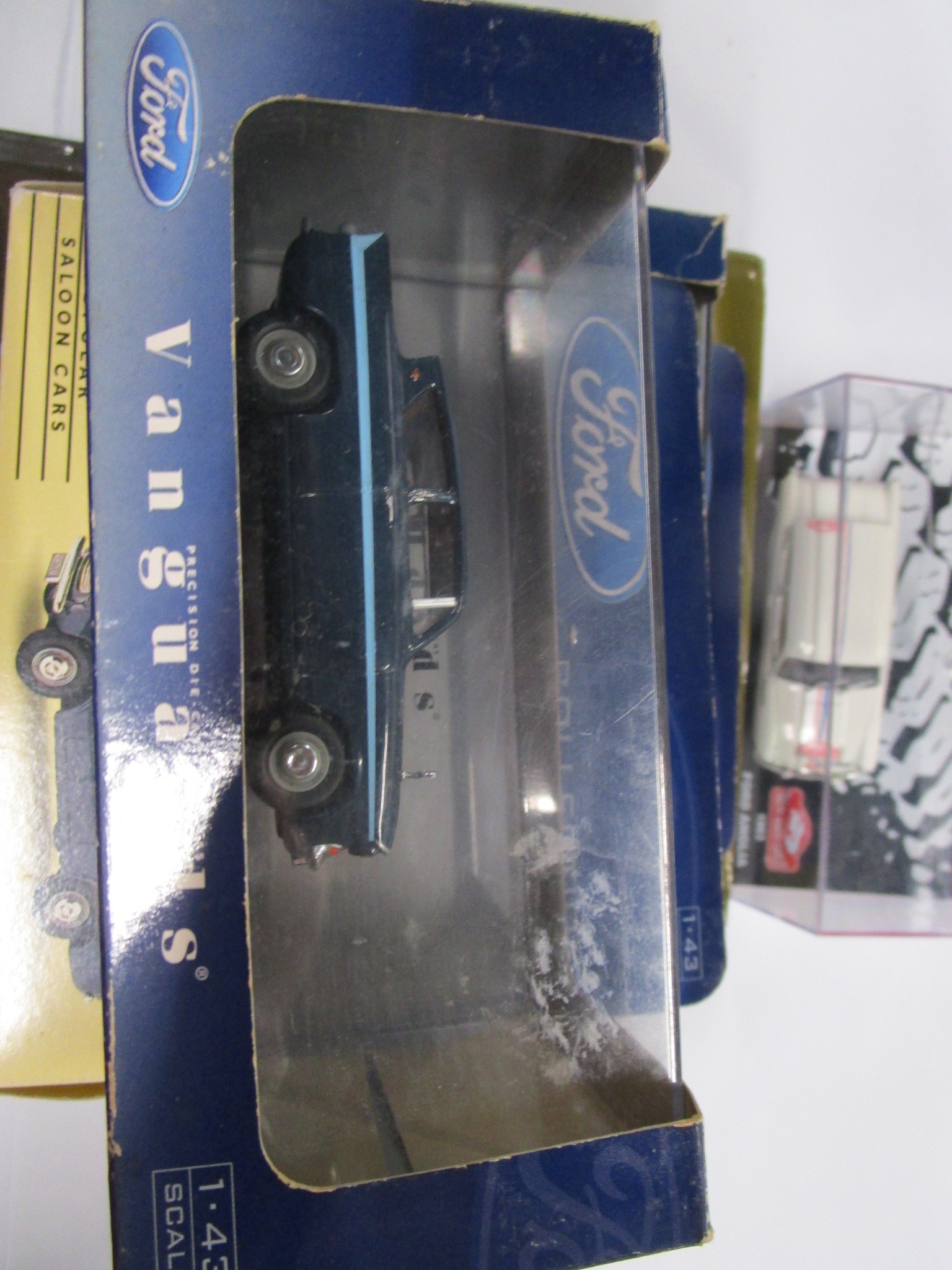 A selection of model Ford cars to include Escort ,Anglia ,Capri etc along with a a centenary book celebrating 100 years of Ford in the UK .