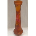 GALLE STYLE GLASS VASE WITH RED & ORANGE FLORAL DECORATION. HEIGHT - 29.5 CM WITH GALLE SIGNATURE