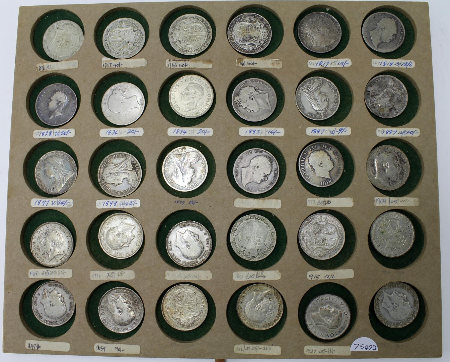 GB Halfcrowns (30) collection in a tray, 1817 to 1937 various.