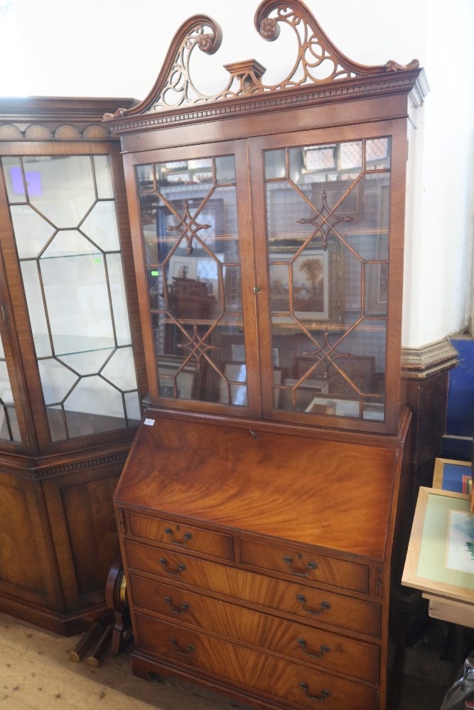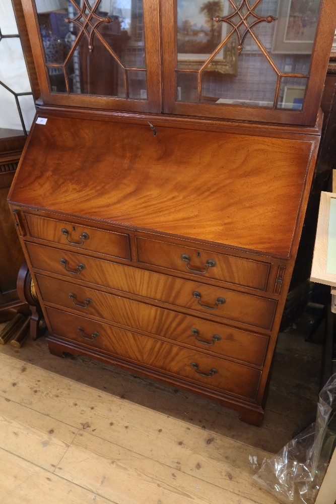 A reproduction mahogany bureau bookcase with 36ins height 88ins
