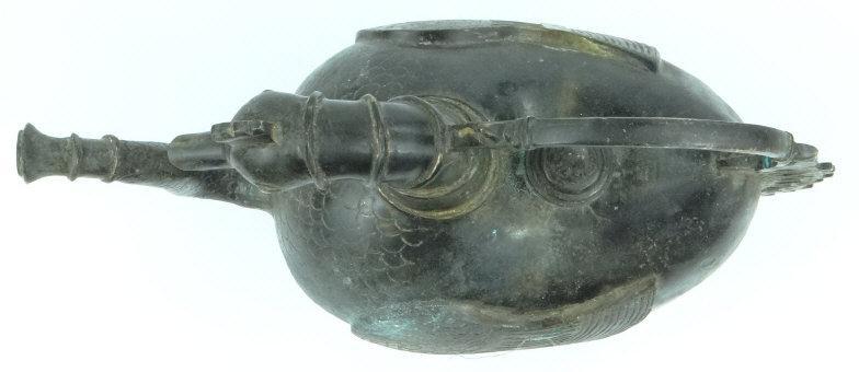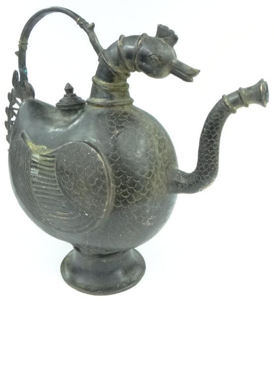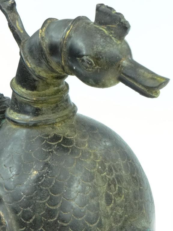 Islamic Persian bronze duck shaped ewer with scaled spout, 33cm high
