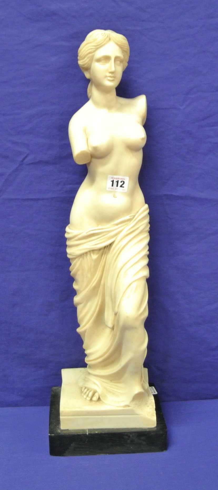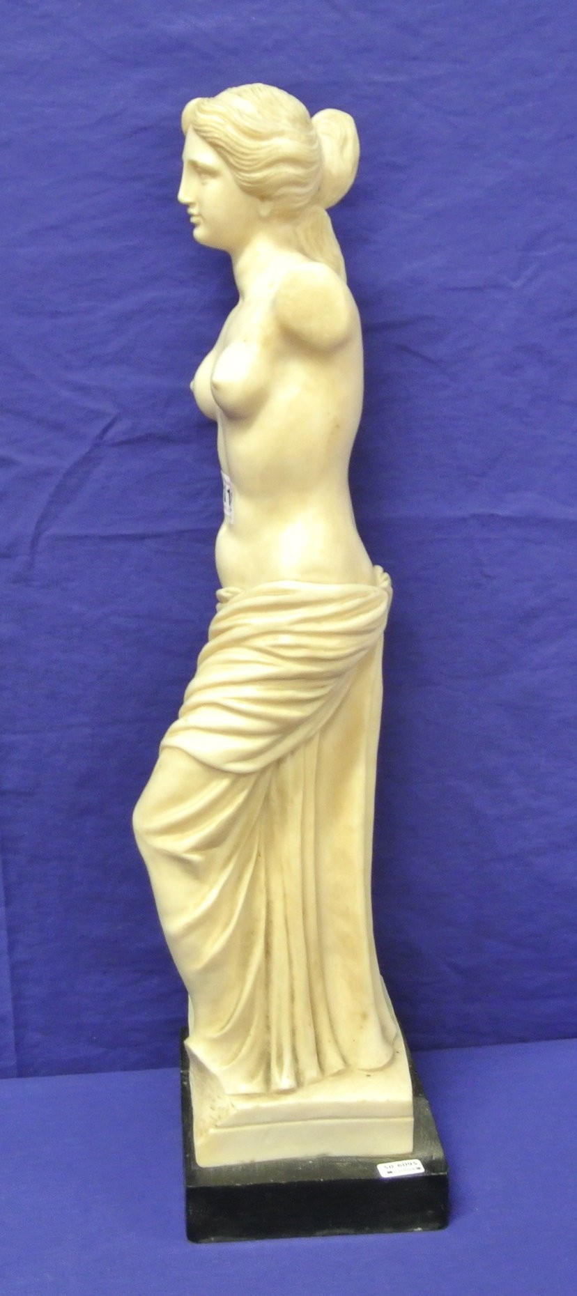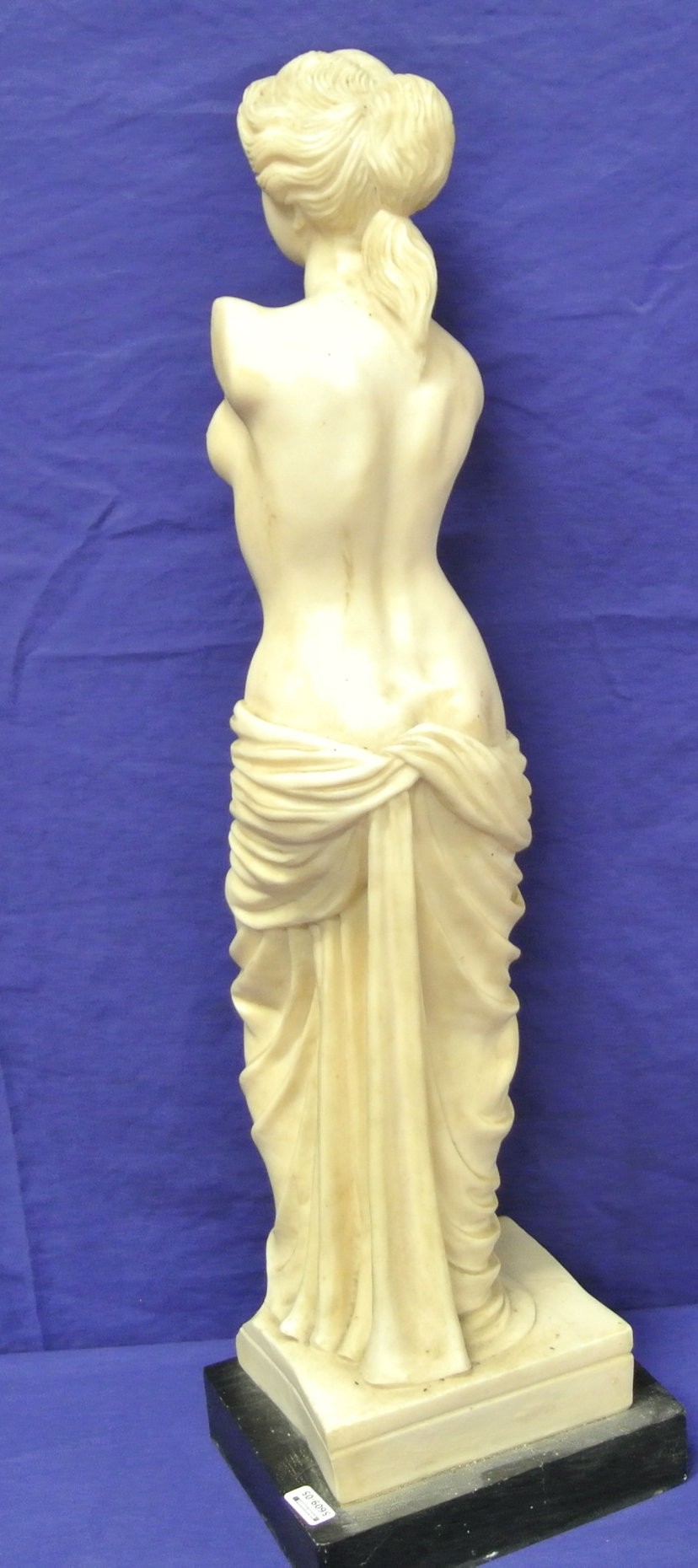 Ornate alabaster statue of Venus de Milo on stepped base
