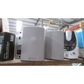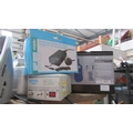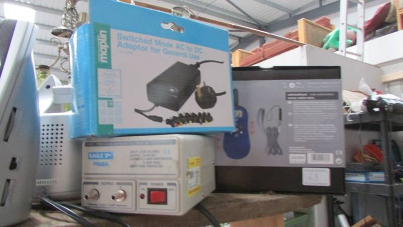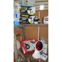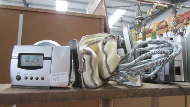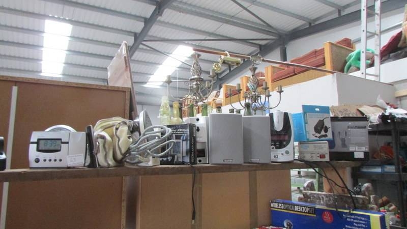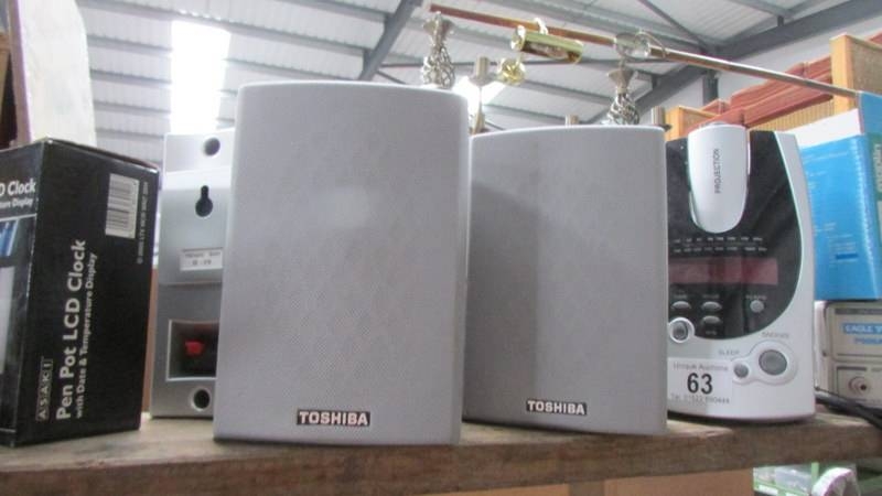 A mixed lot including clocks, walkie talkie, speakers etc.,