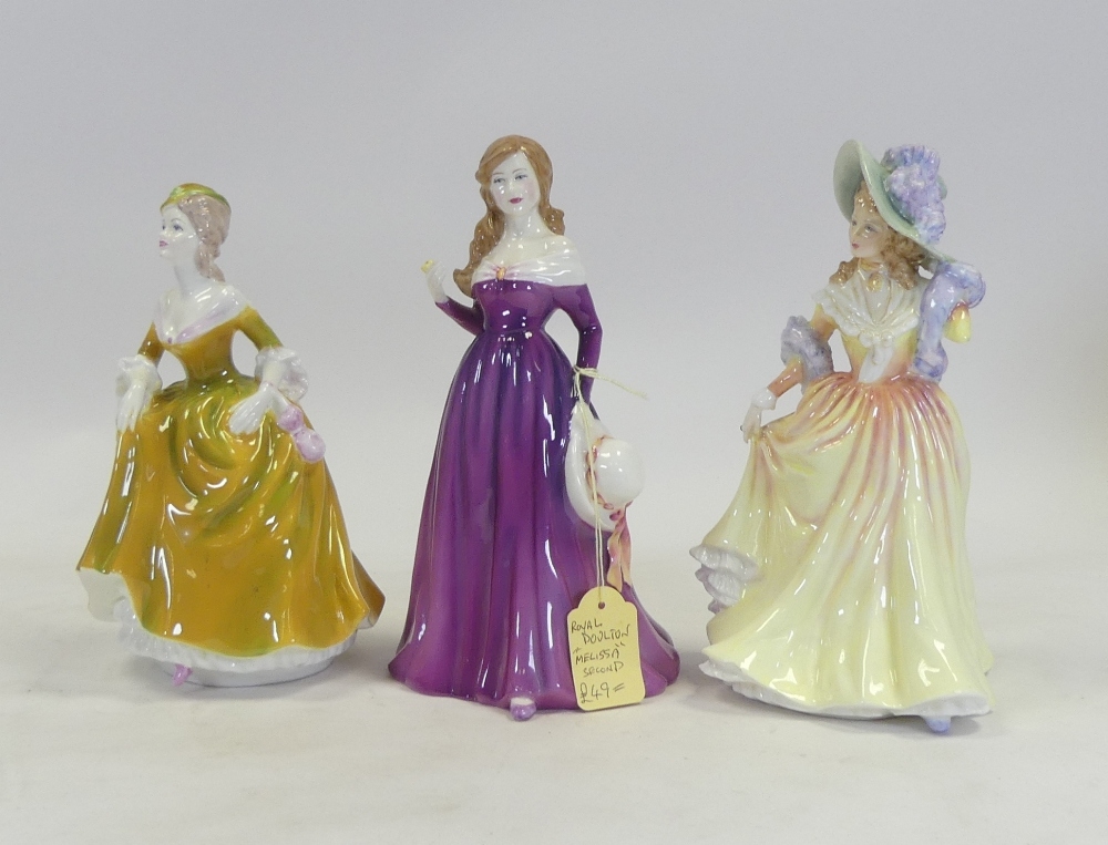 Royal Doulton Lady Figurines to include:- Katie HN3360, Melissa HN3885(seconds) together with Coalport Josephine, tallest:-20cm(3)