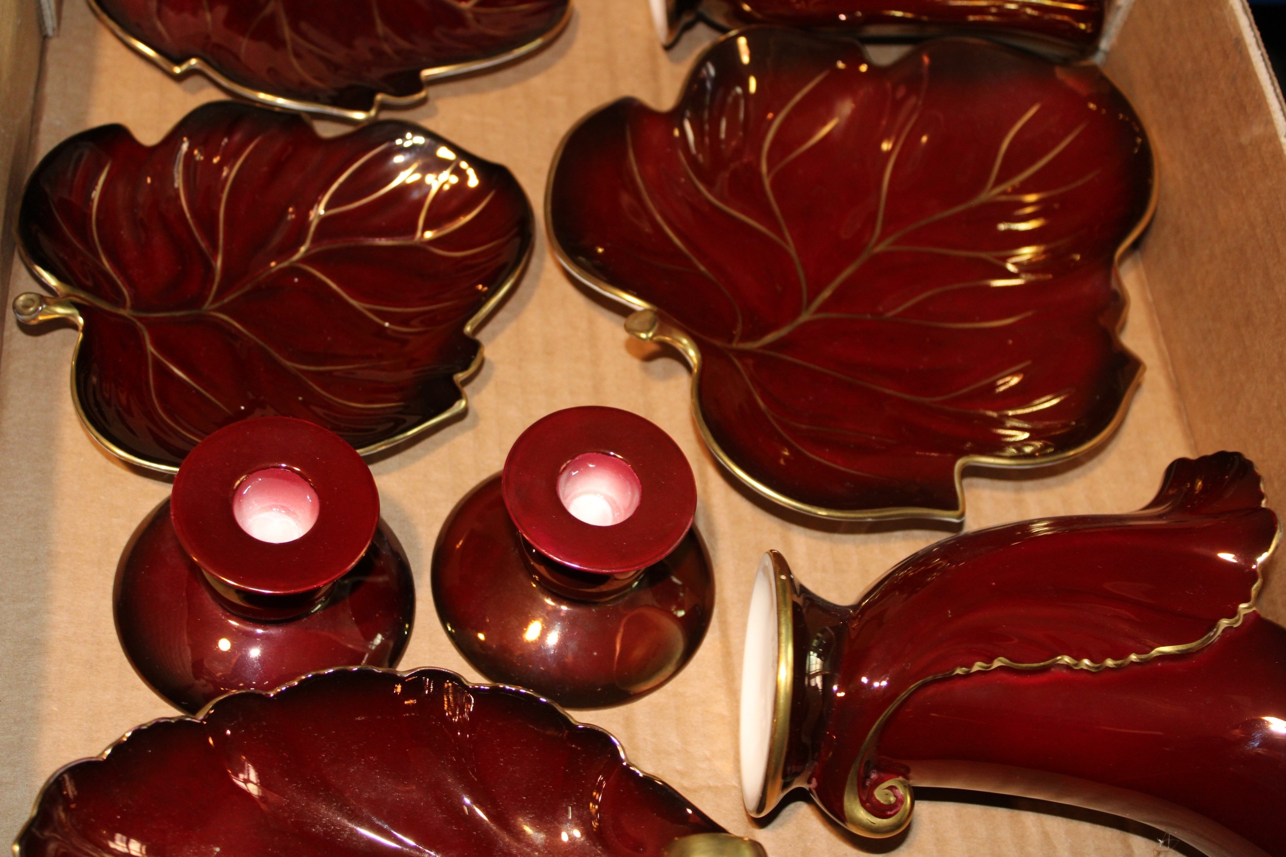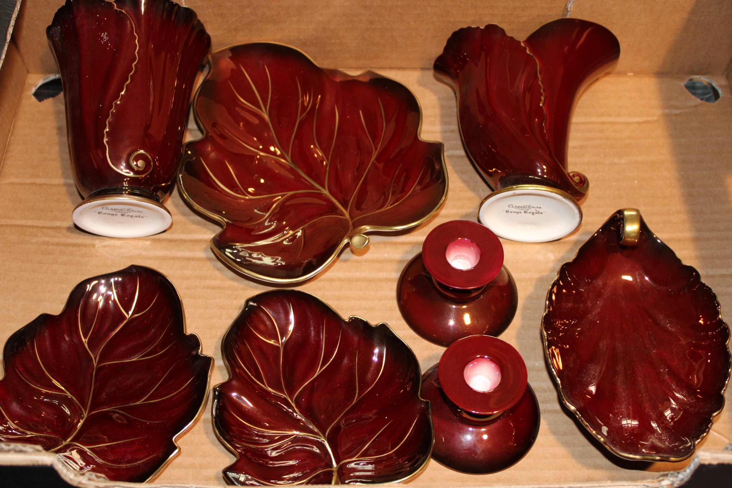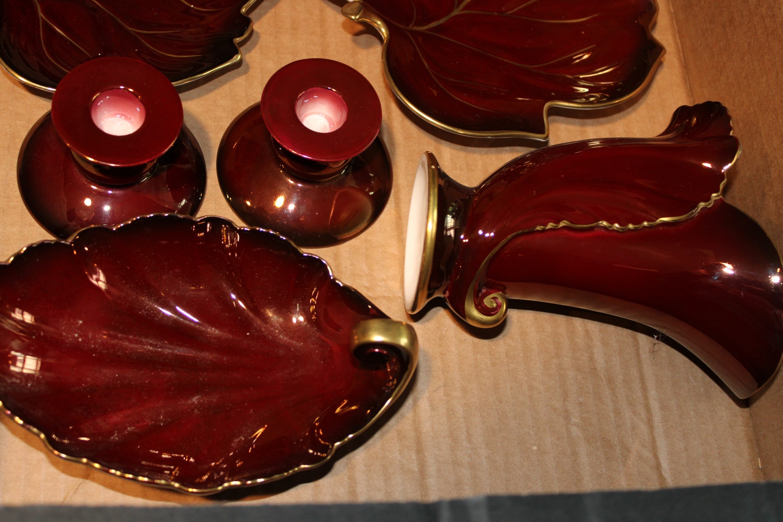A collection of Carlton Ware 'Rouge Royale' ceramics to include, pair of candlesticks, vases and other similar items. (8).