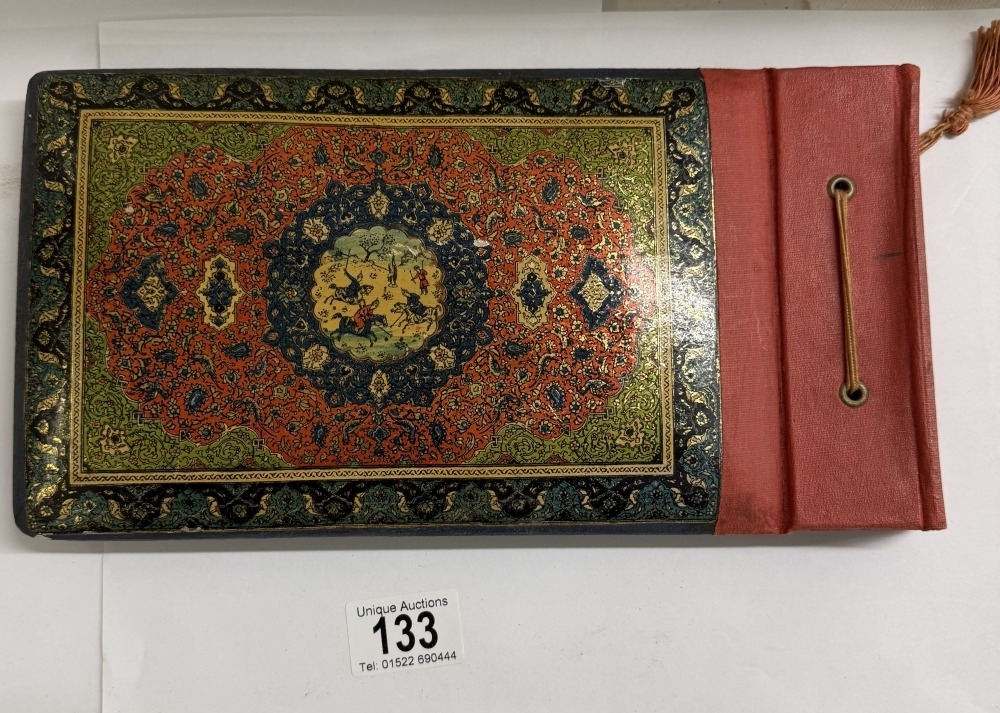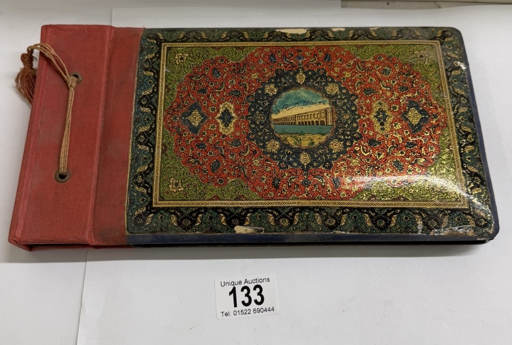 A vintage ornate lacquer paper mache photo album (Some leaf a/f)