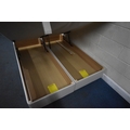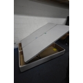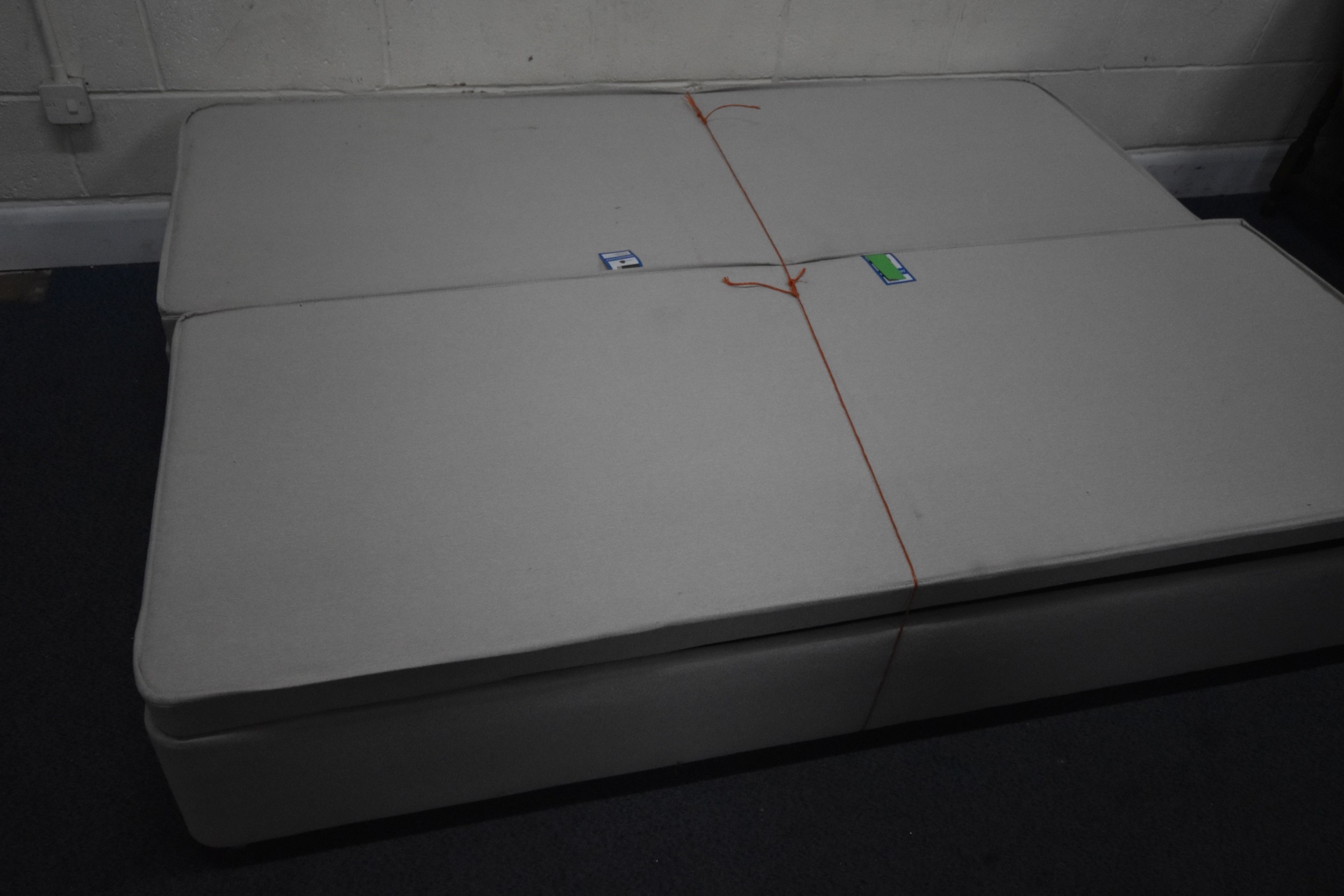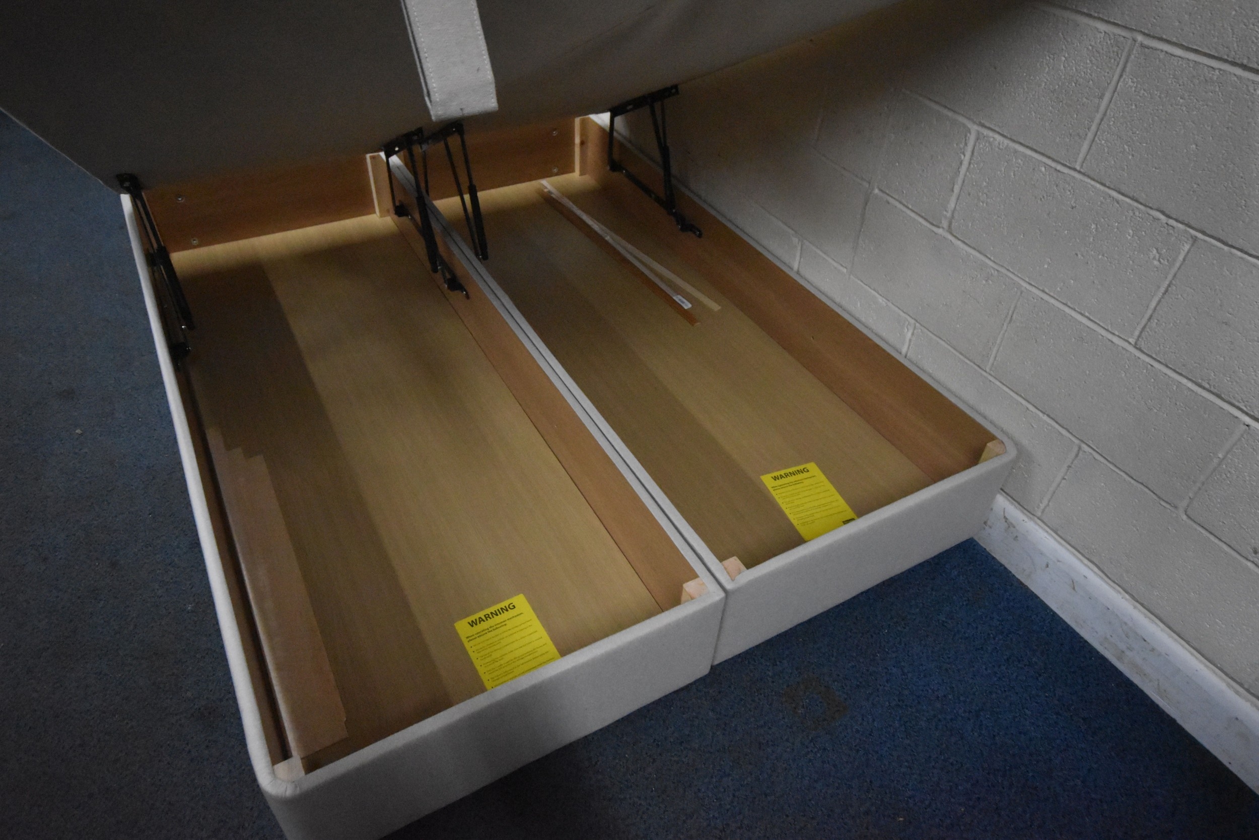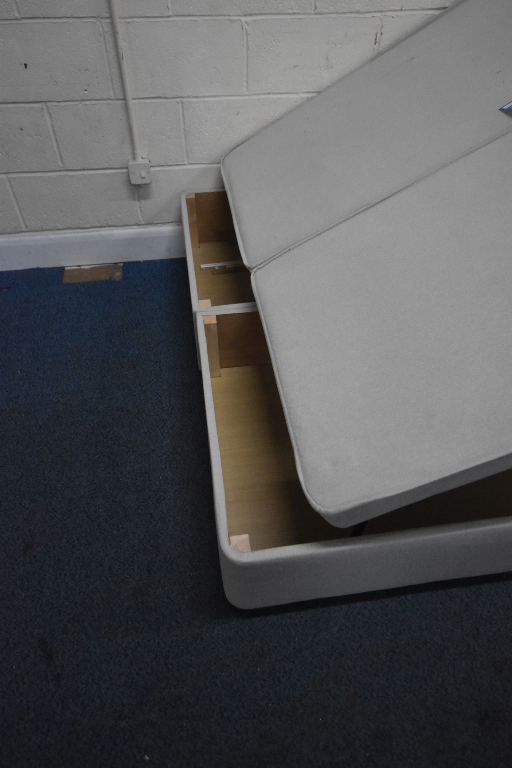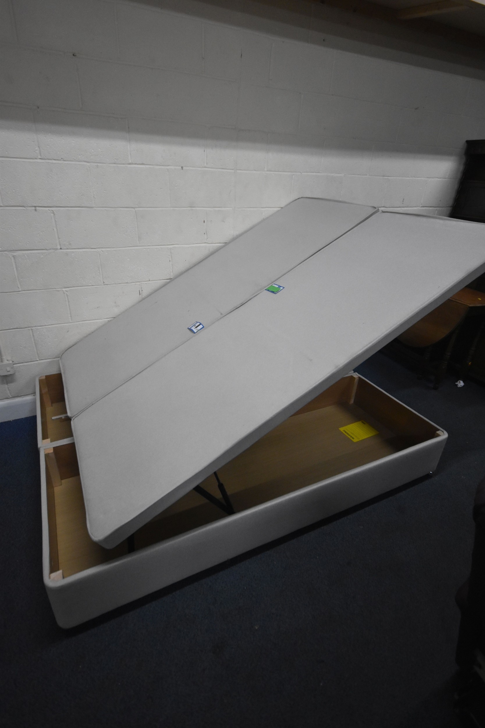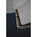A DREAMS 5FT TWIN OTTOMAN DIVAN BASES, along with a beech headboard, condition report: would benefit from a clean (3 pieces)