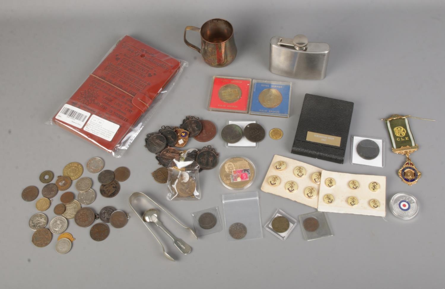 A quantity of collectables to include international tokens and medals such as Hull lead works, 16th century Hans Schultes jetton token, 1820 Commemoration of Withdrawal of the Divorce Bill bronze medal, Society of Miniature Rifle Club, etc.