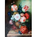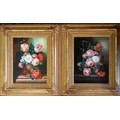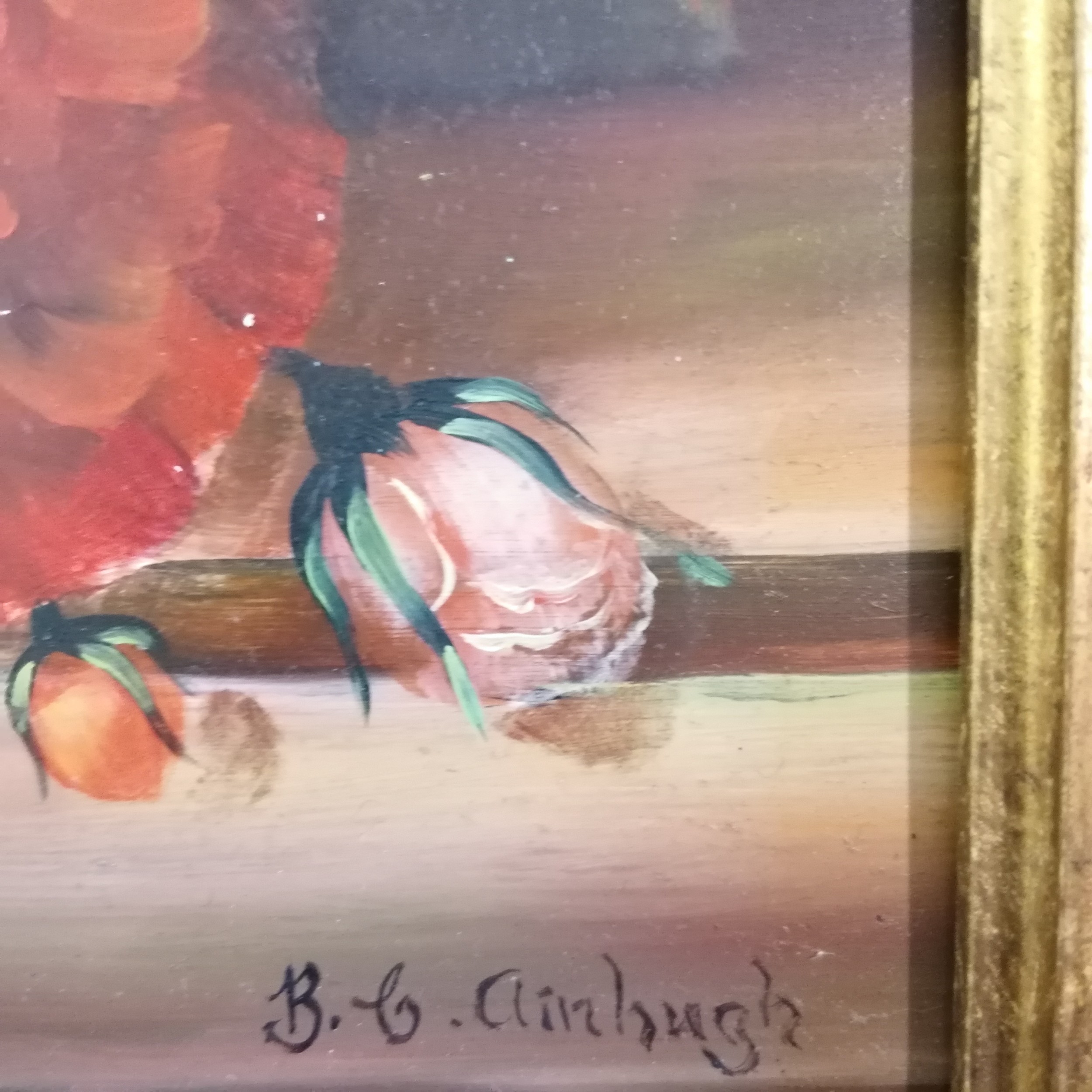 Pair of gilt framed oil paintings on board of flowers in a vase signed B.C. Amhugh? frame 61cm x 51cm