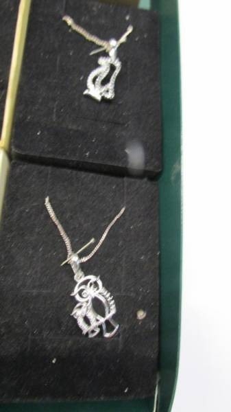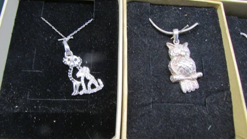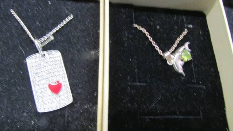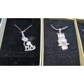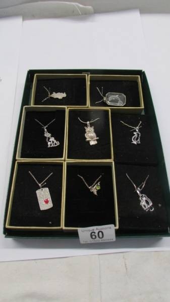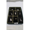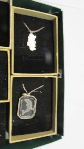 Eight silver pendants in boxes.