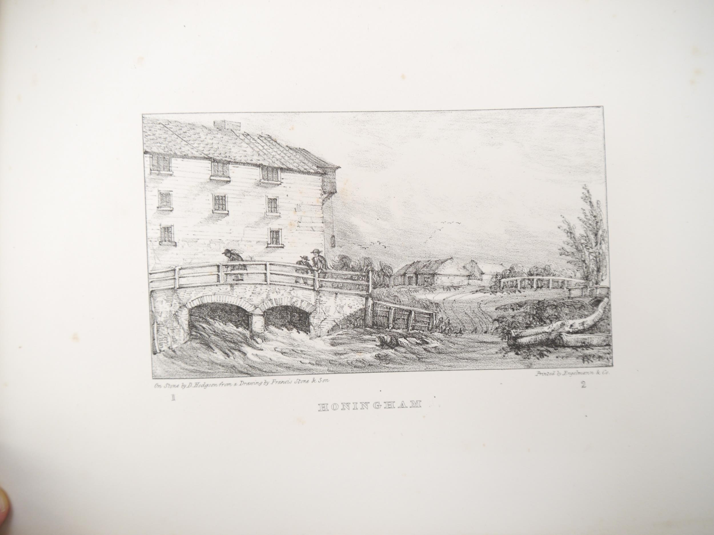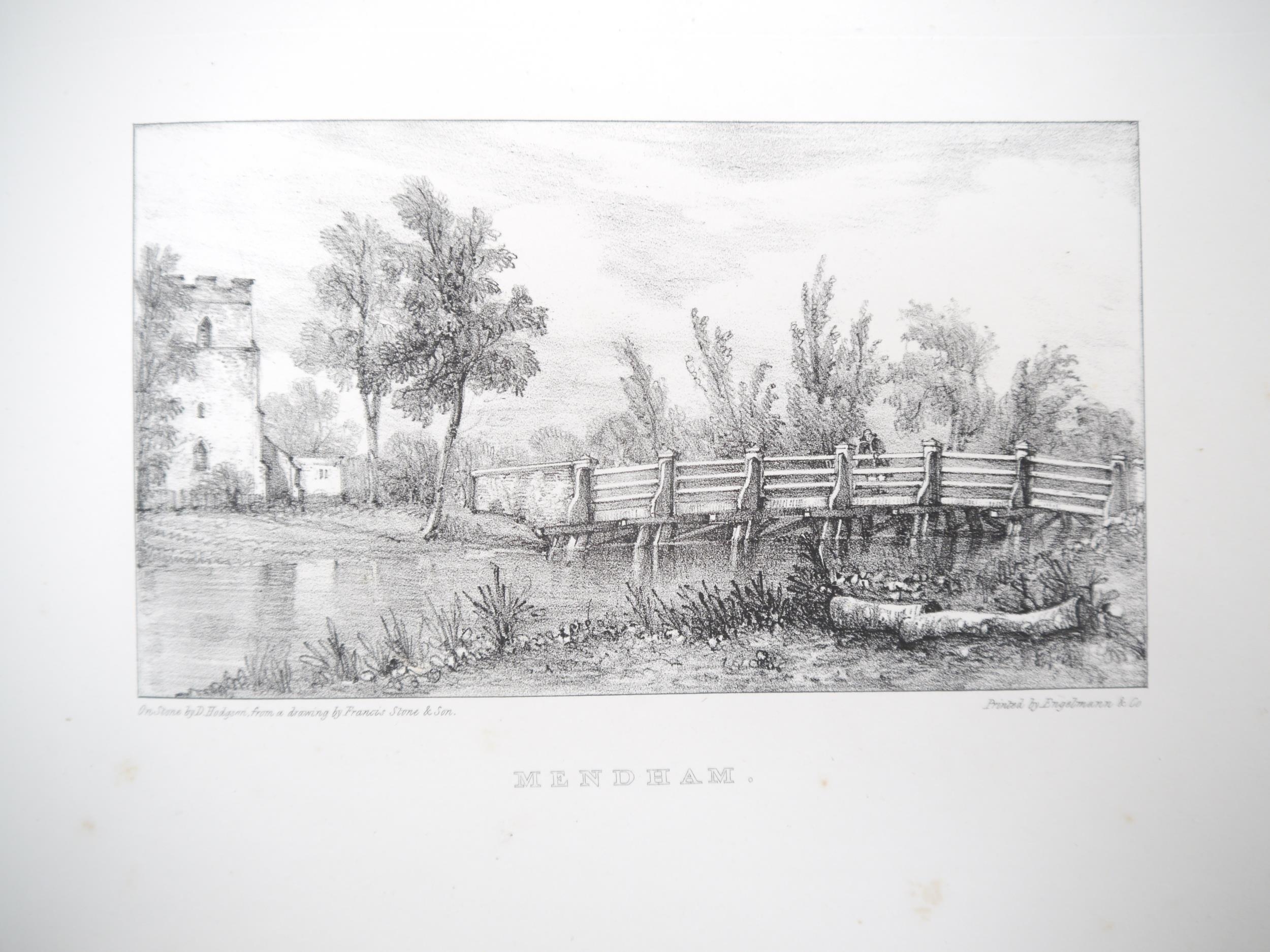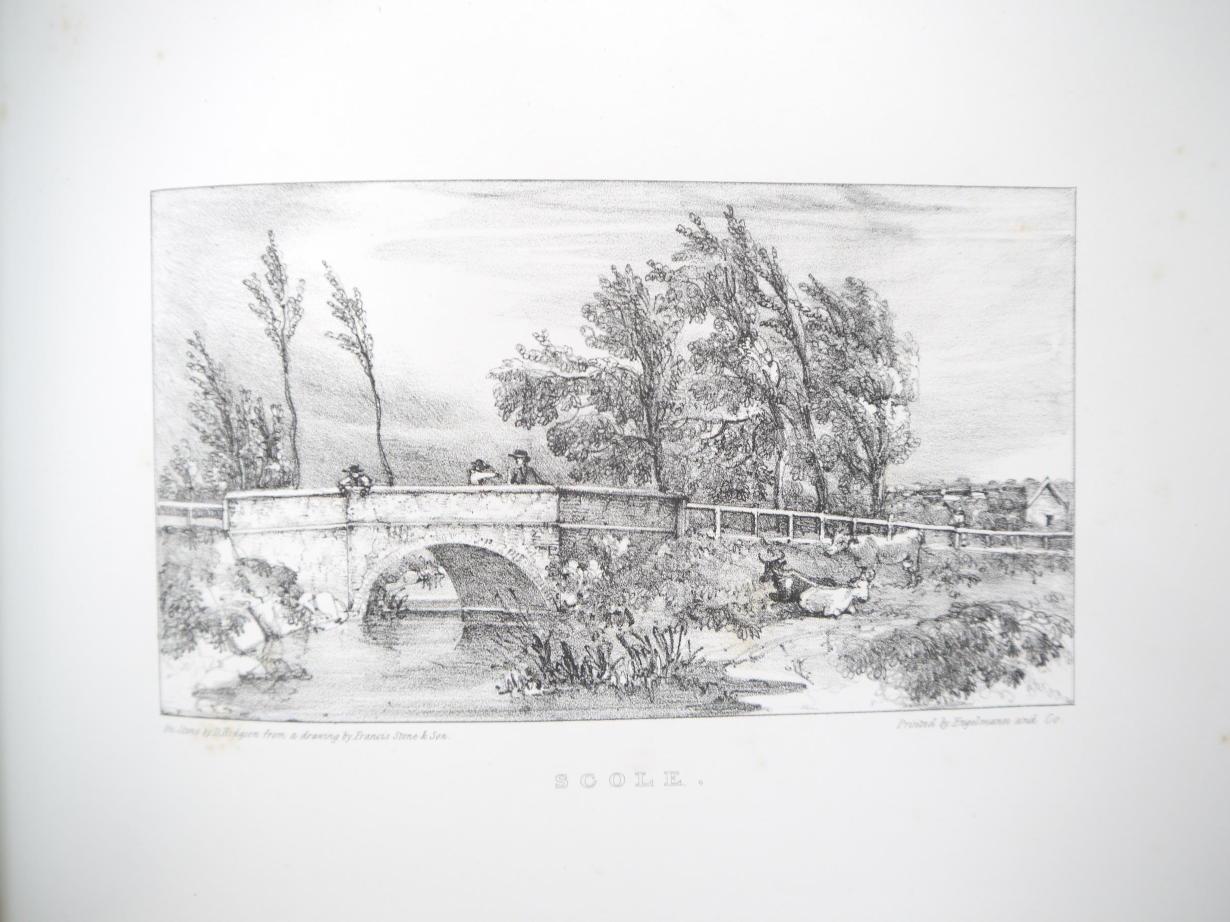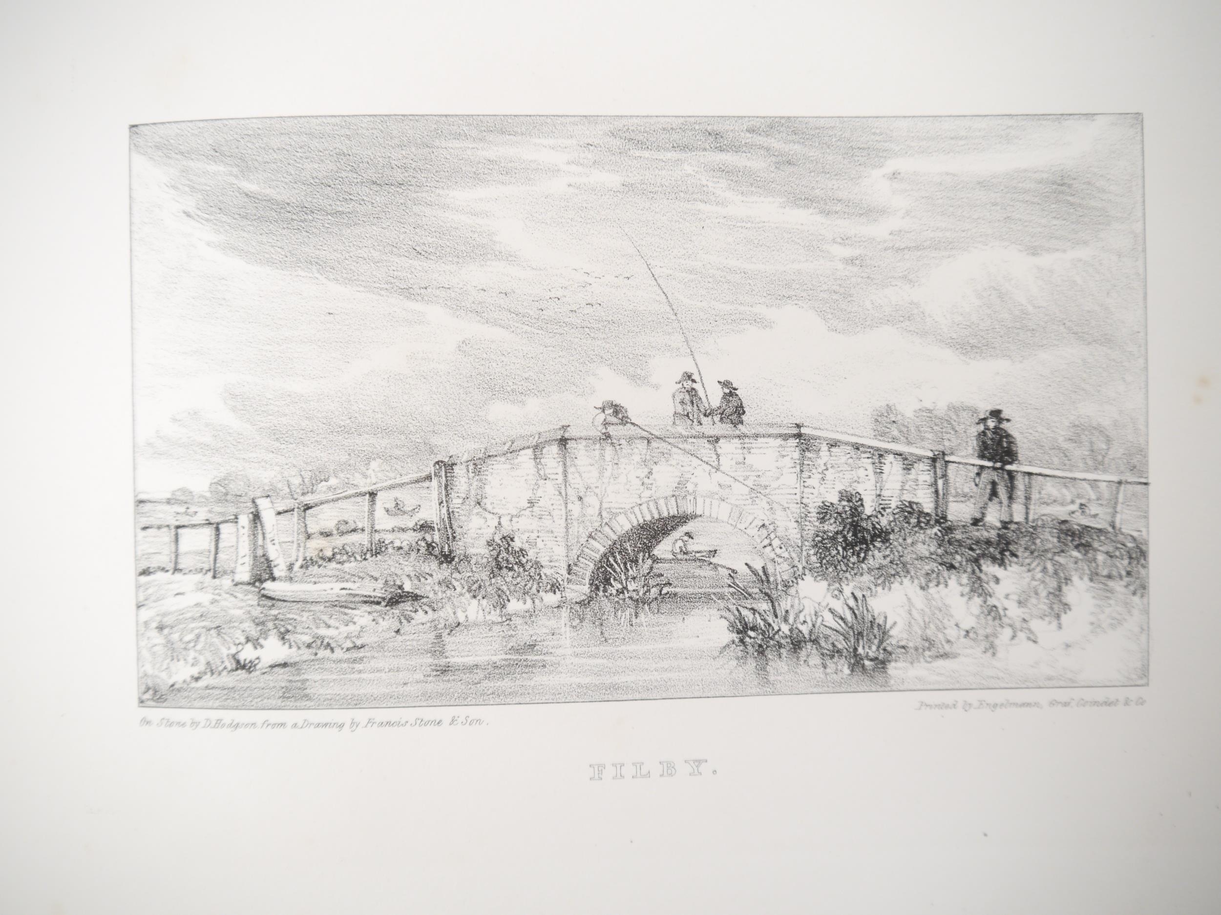 Francis Stone: 'Picturesque views of all the Bridges Belonging to the County of Norfolk in a series of Eighty-Four Prints in Lithography', [1830], 1st edition, lithograph title + 83 (of 84) litho plates by Engelman after Francis Stone, lacks 'Harpham' plate, 'Larlingford 1' supplied loose at front, bound in 2 modern cloth volumes, original brown card wraps for the 4 parts bound in (wrap for part 1 without printed label). From the collection of Father Peter Harris (2) (E) £50-100
