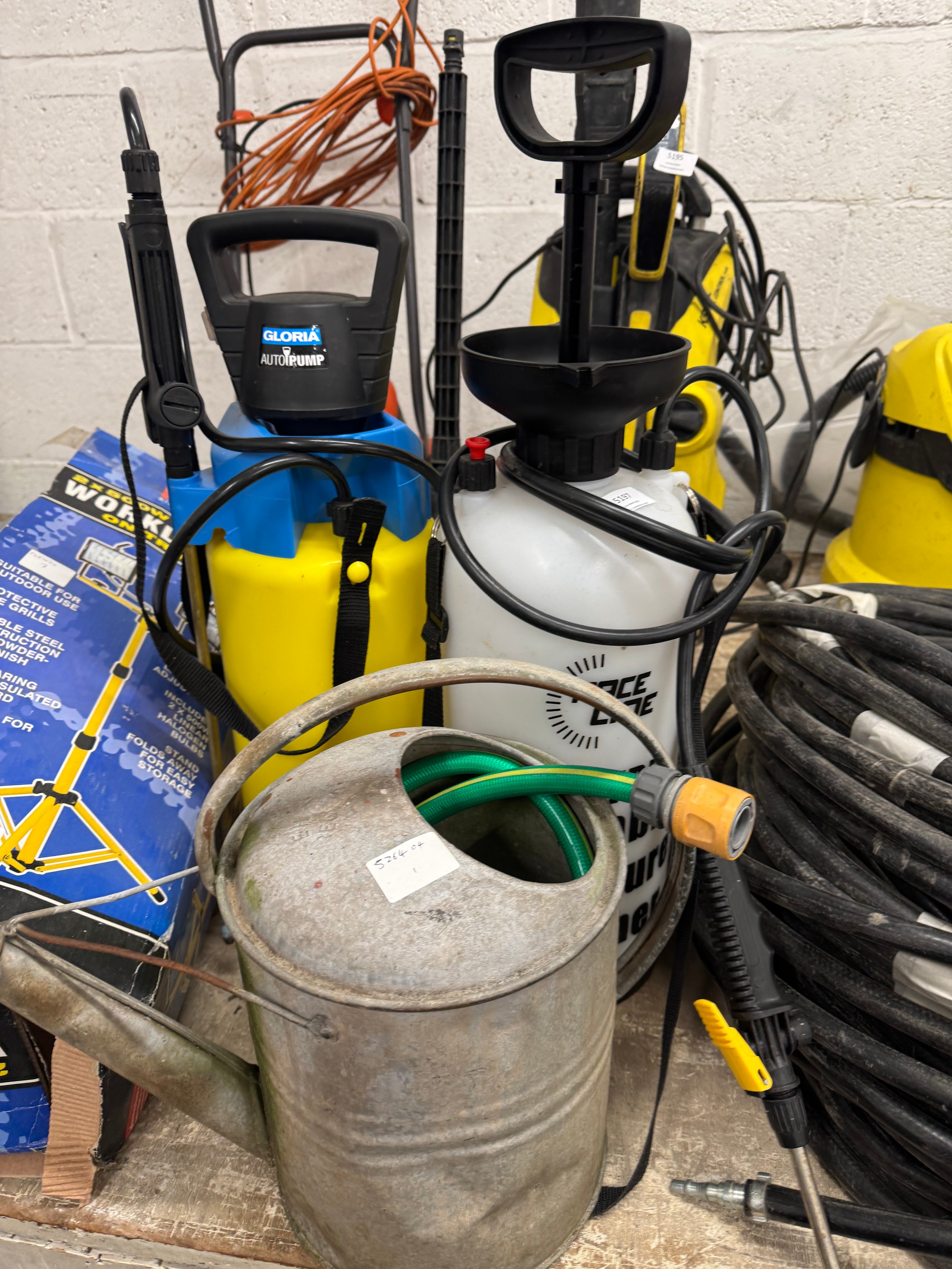 Two garden pumps - a Gloria Auto pump and a race line with a watering can
