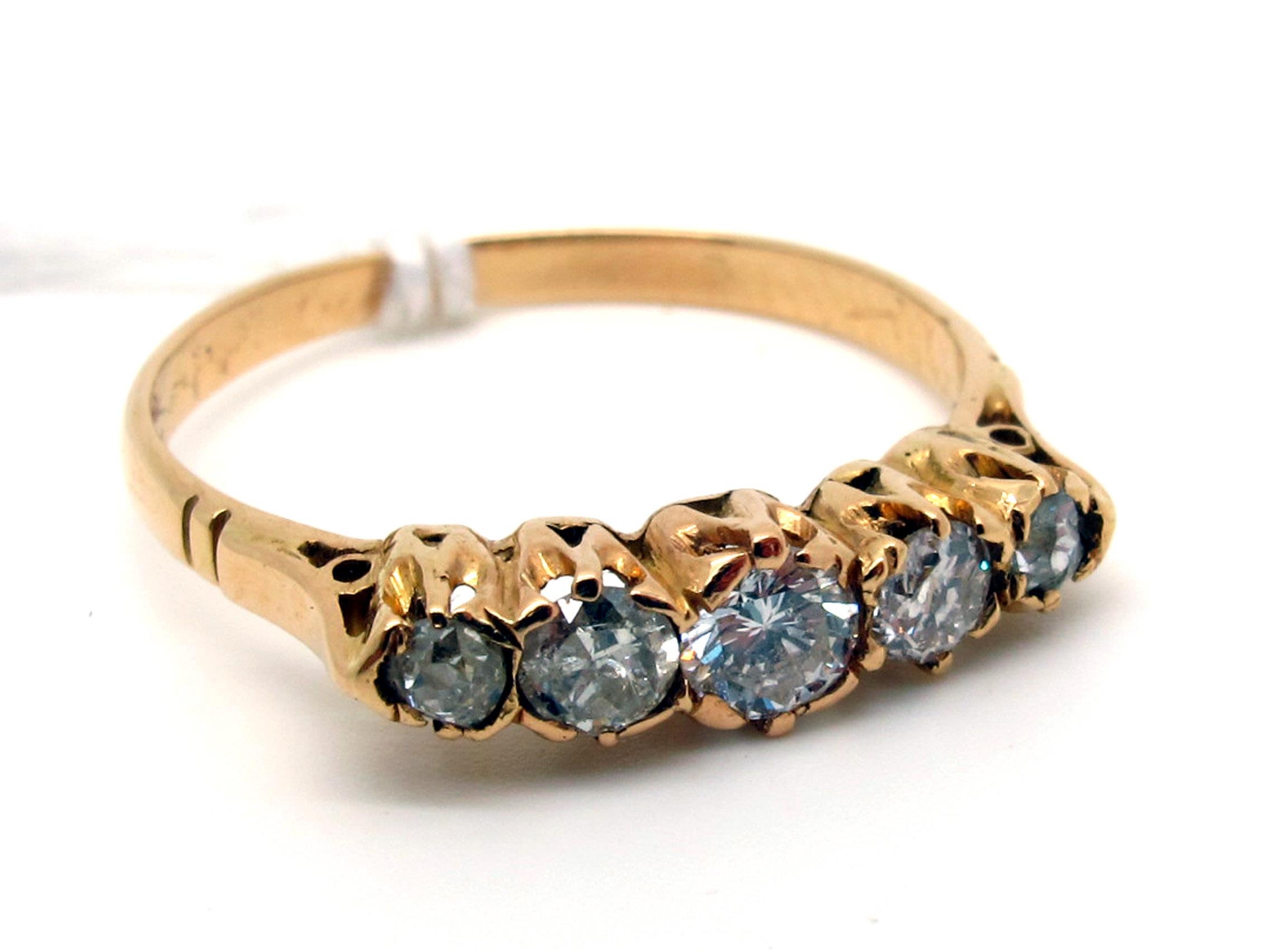 A Victorian Style Five Stone Diamond Ring, the graduated brilliant cut stones claw set (finger size L).