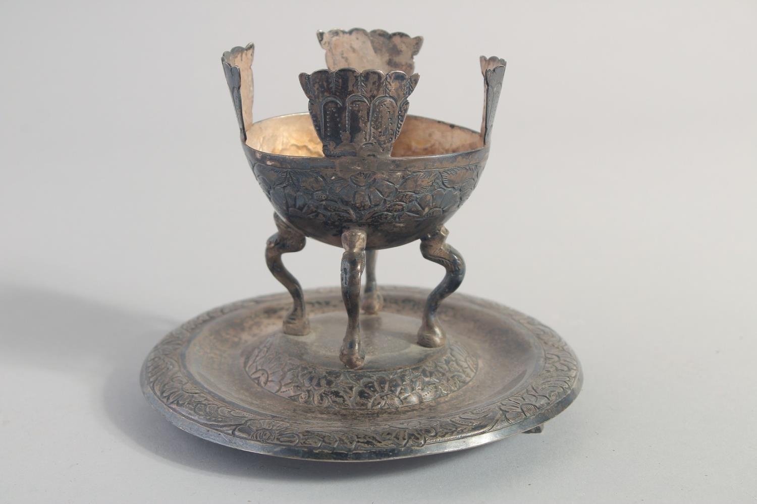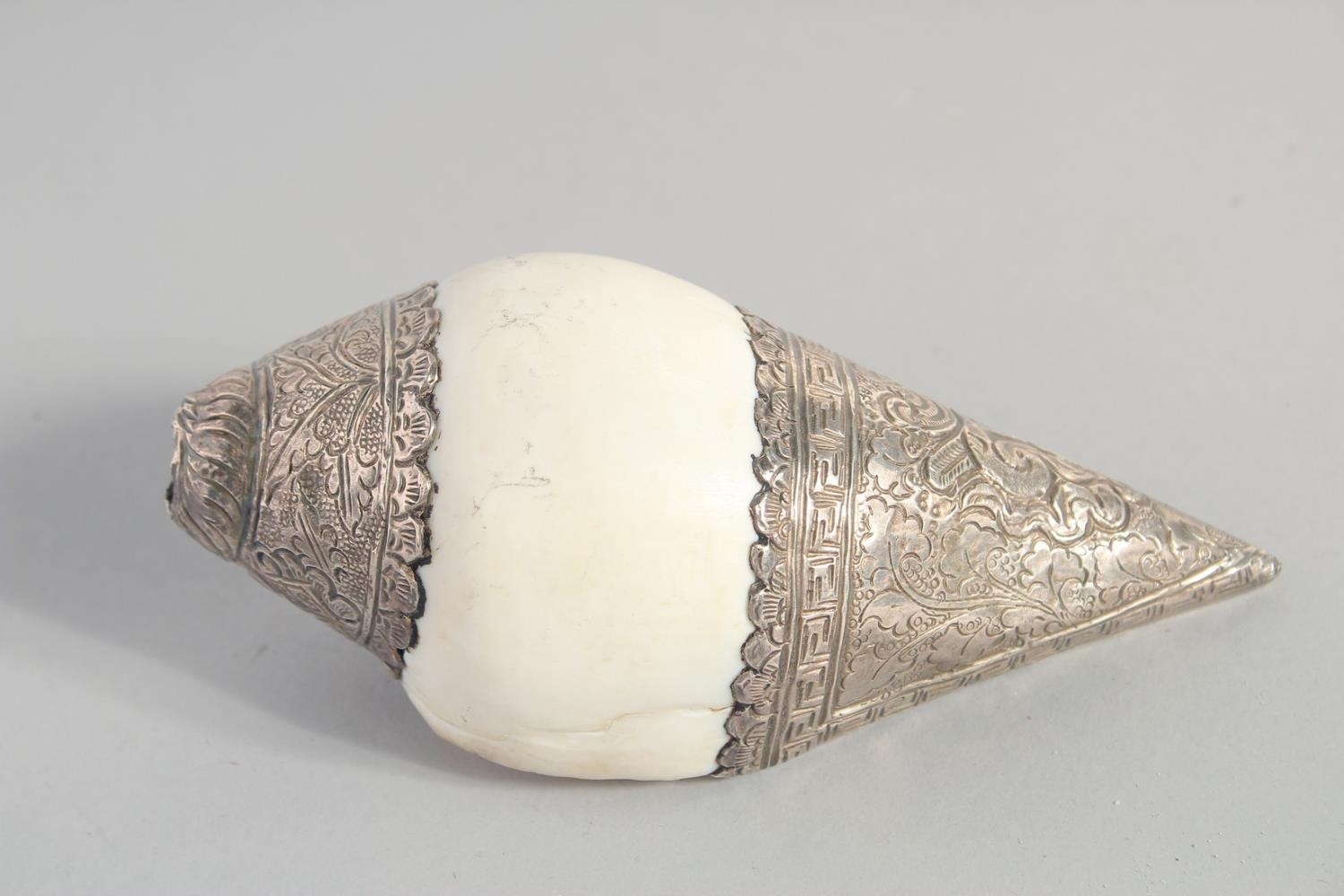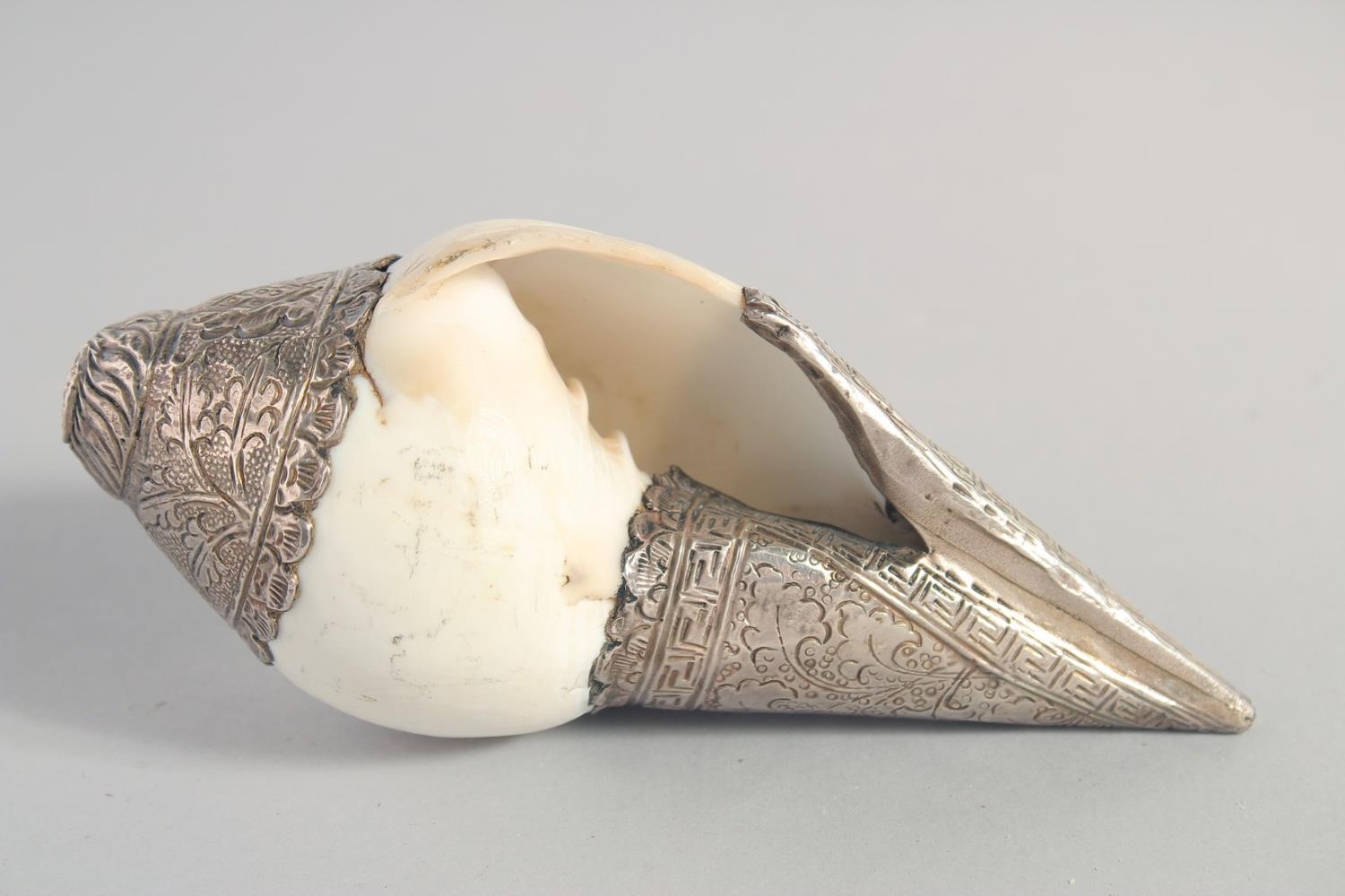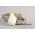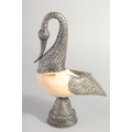 TWO METAL MOUNTED SHELLS, on formed as a swan, together with a metal stand, (3).