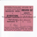 TICKET 1968 MANCHESTER UNITED V EVERTON Ticket for the lea...