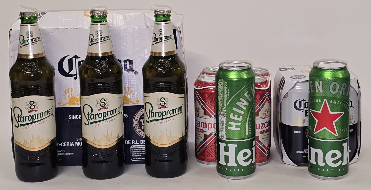 Collection of misc. lager to include Cruzcampo, Corona and Heineken (REF P99, P96, P10).