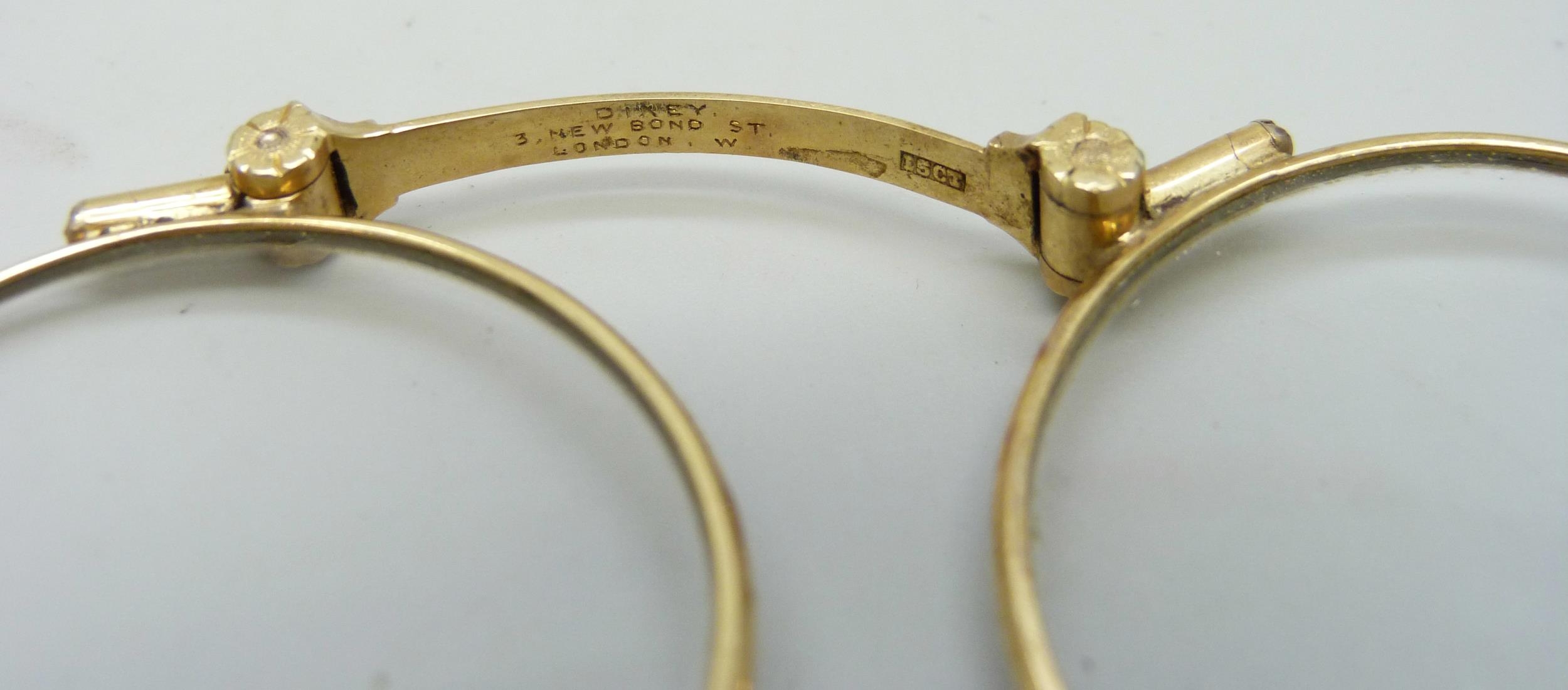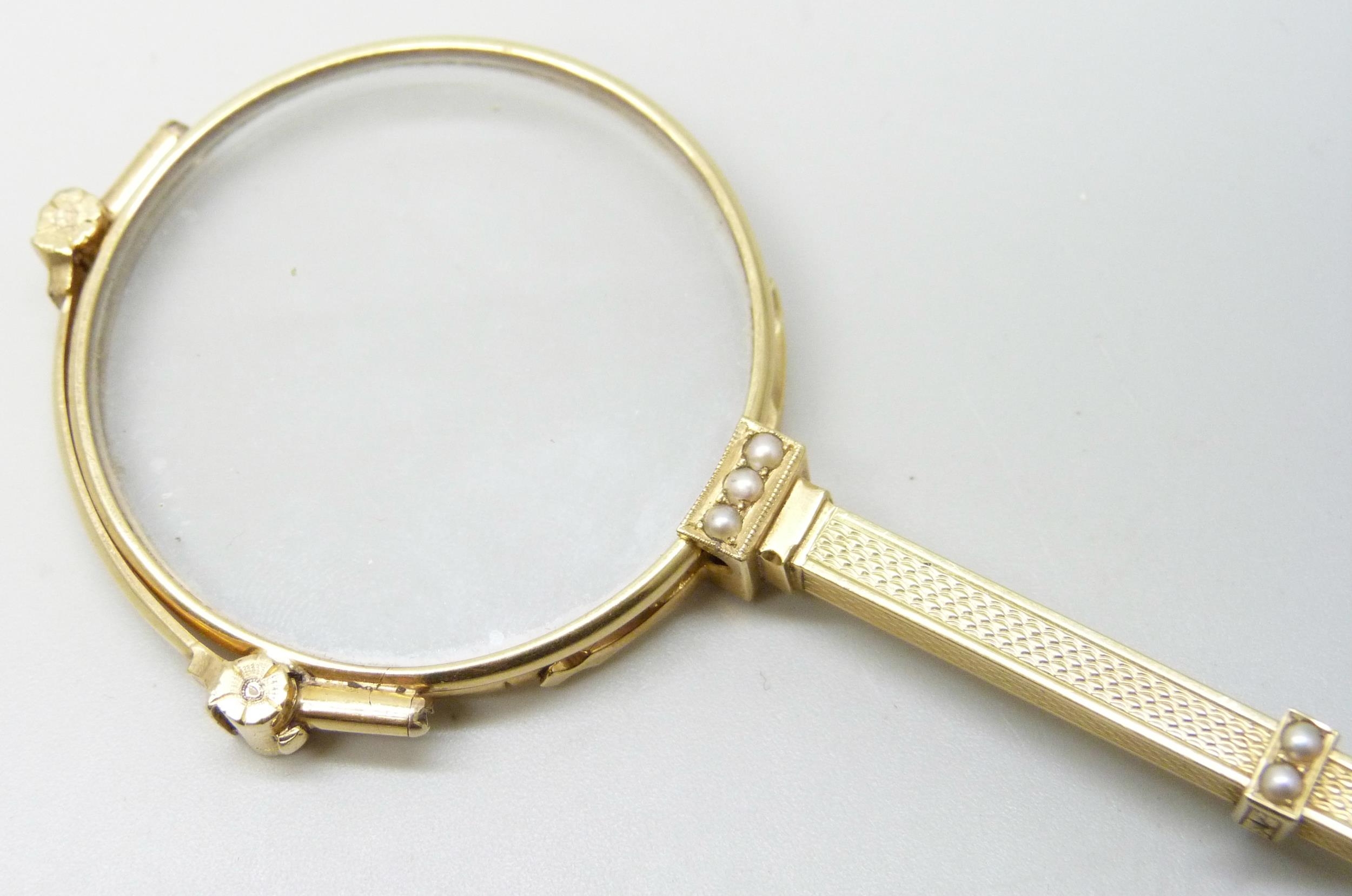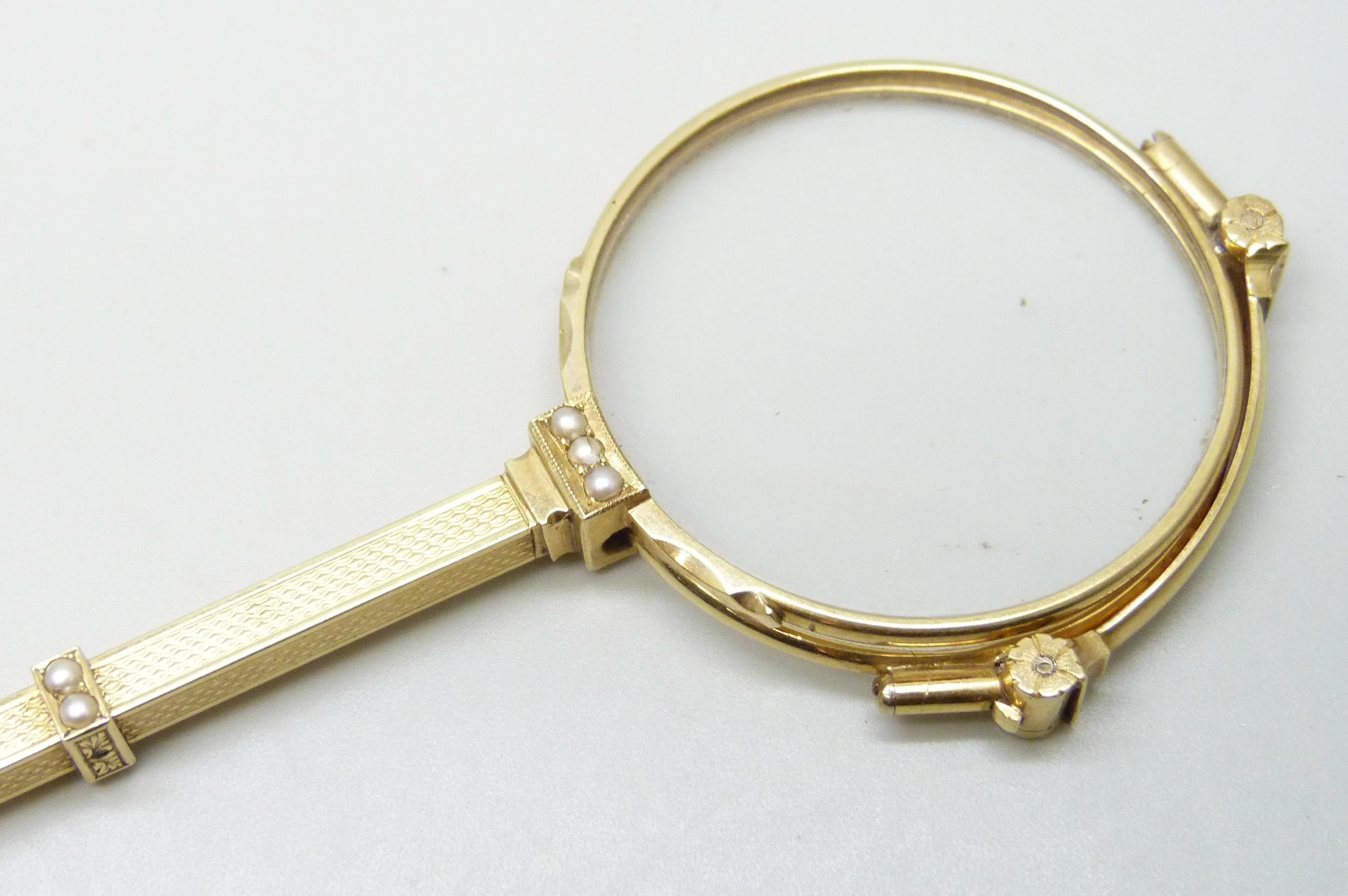 A pair of 15ct gold pearl set lorgnettes, Dixey, New Bond Street, London, 22.9g total, 11.7cm