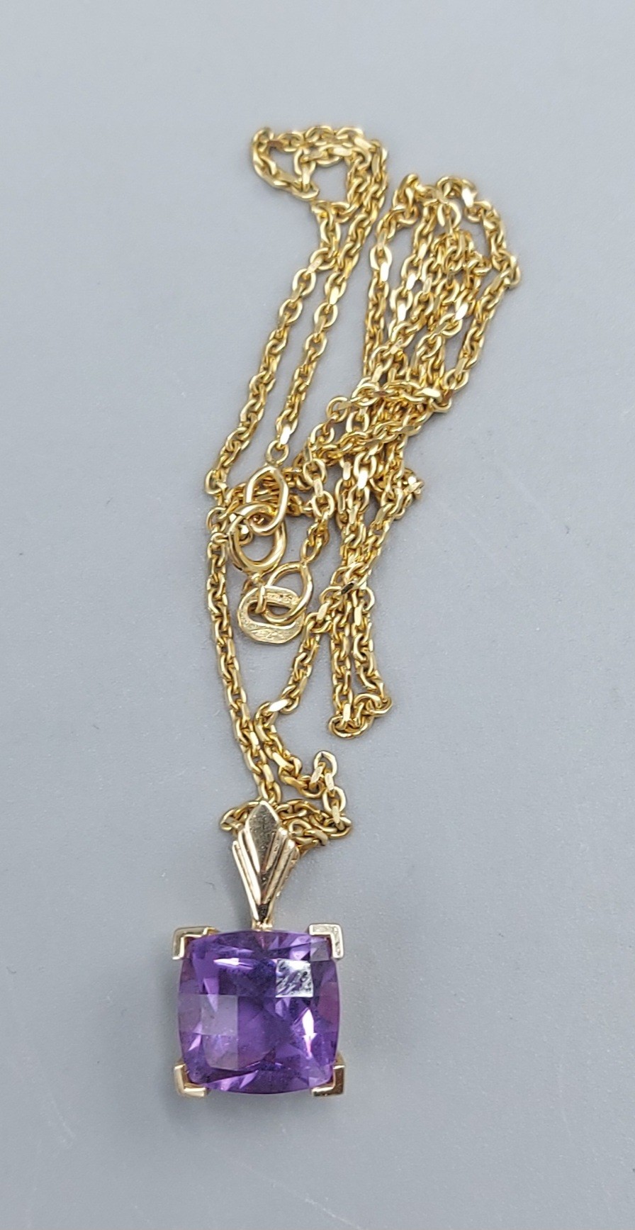 A 9ct gold pendant set Amethyst with 9ct gold linked chain, 5.4gms