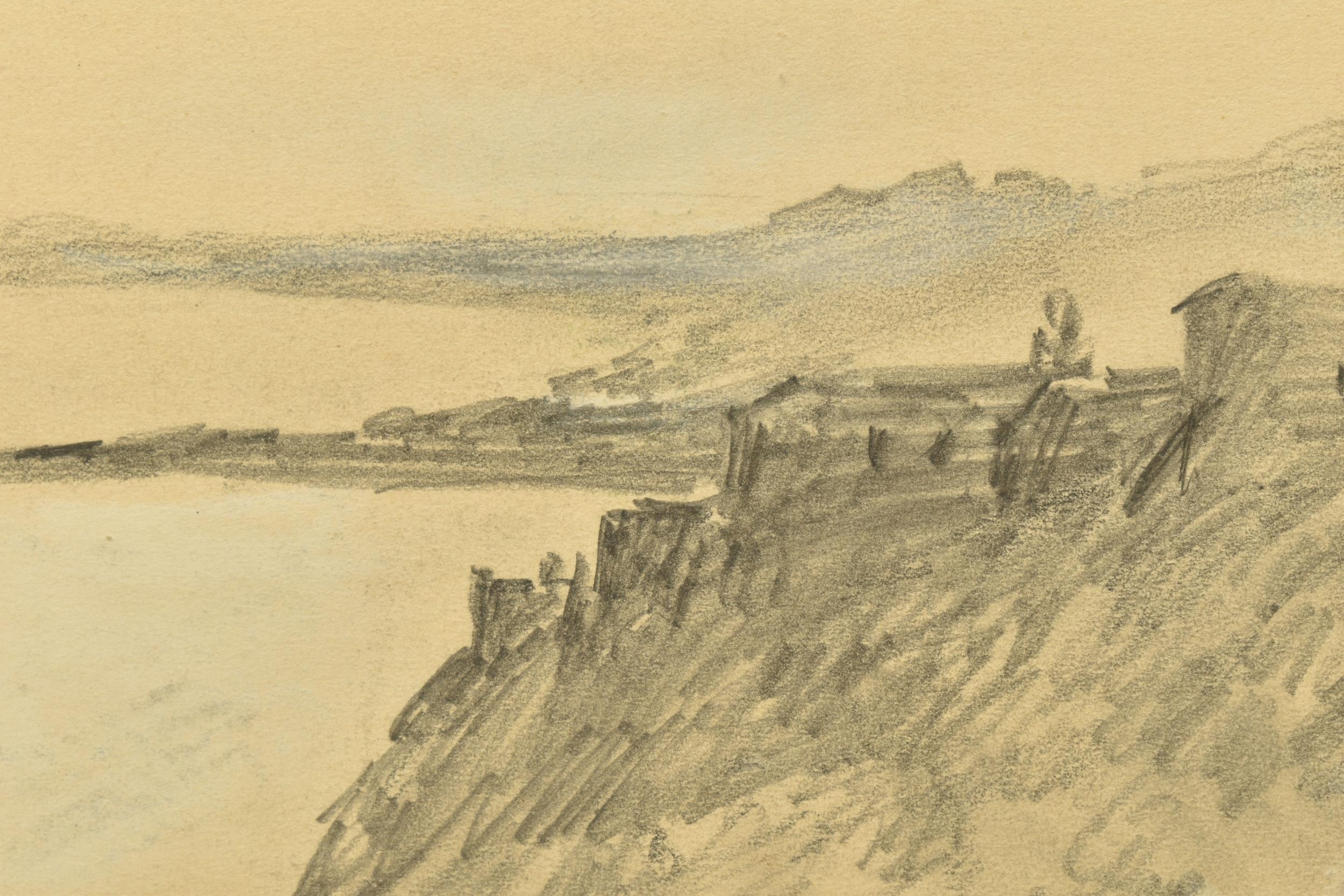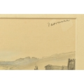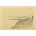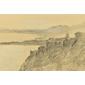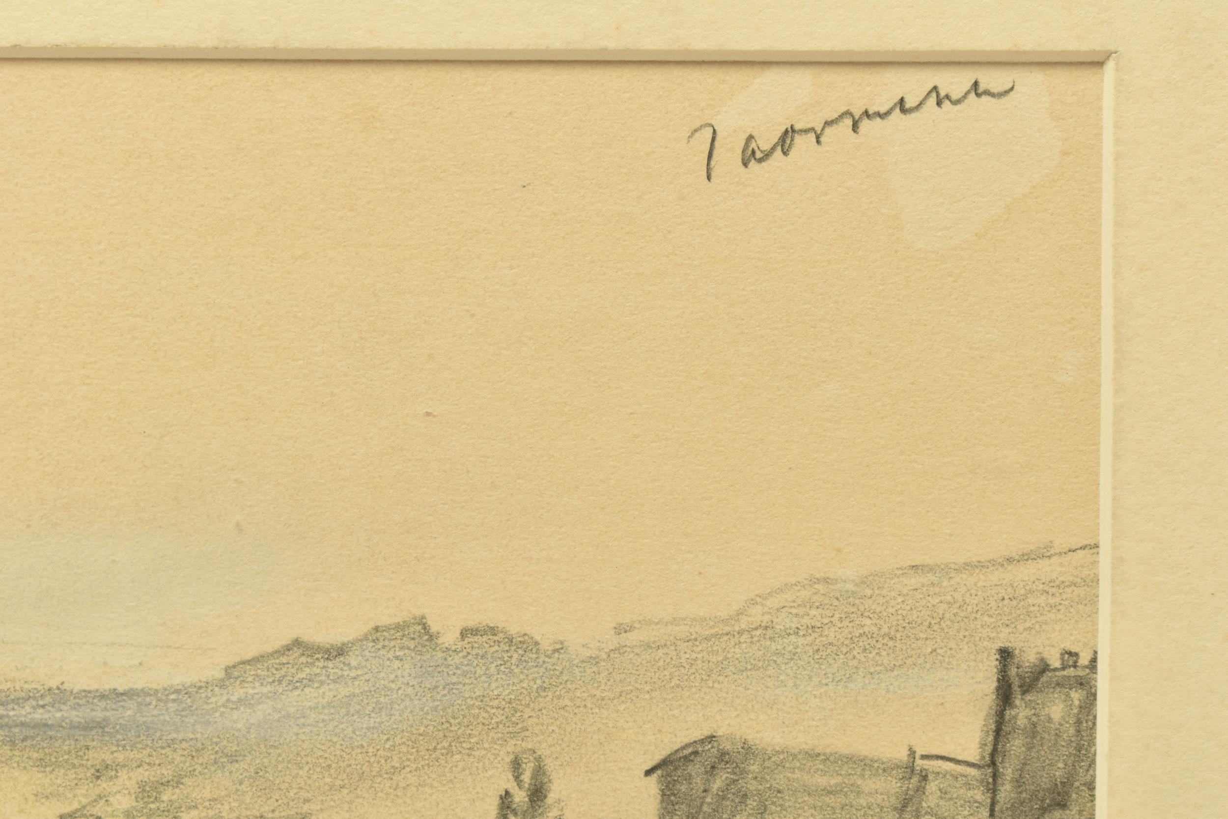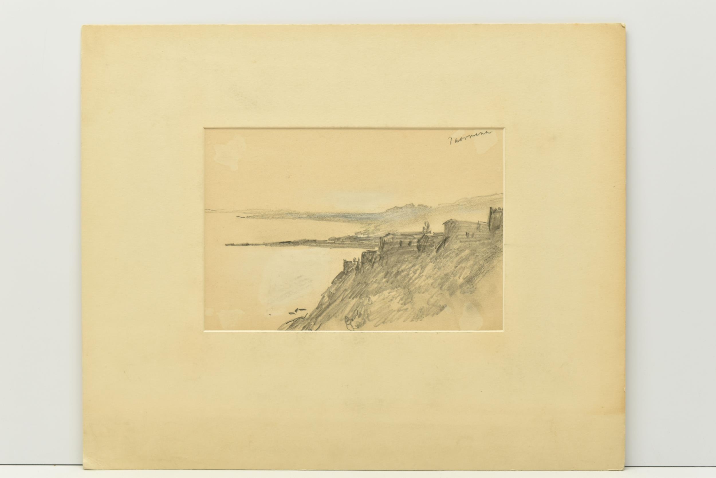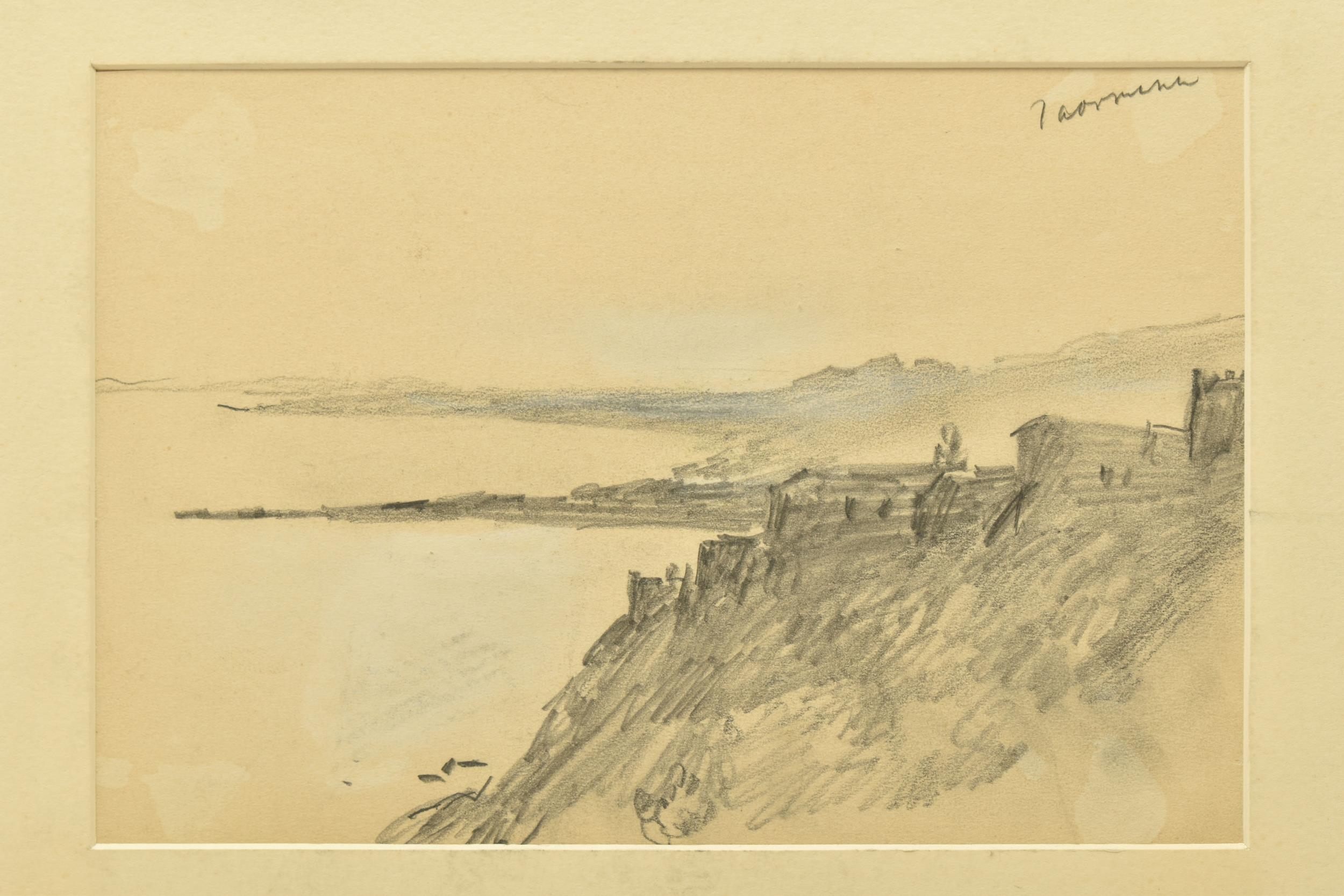 CIRCLE OF JOHN JOSEPH BARKER OF BATH (1824-1904) 'TAORMINA', an unsigned sketch depicting the Italian town, pencil on paper with corrections, approximate size 15cm x 21cm, Condition Report: dirty marks to the paper and mount