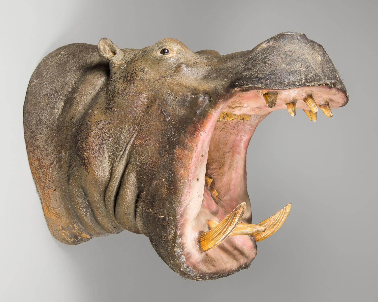 A 20TH CENTURY TAXIDERMY HIPPOPOTAMUS HEAD.