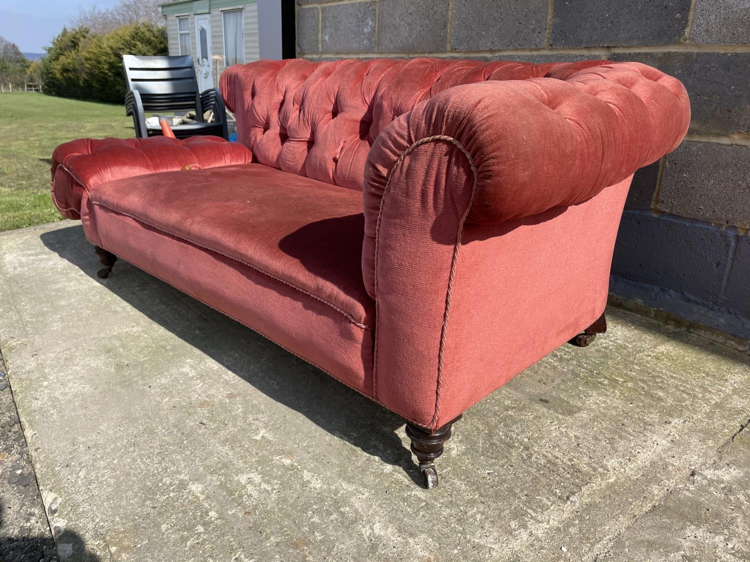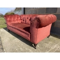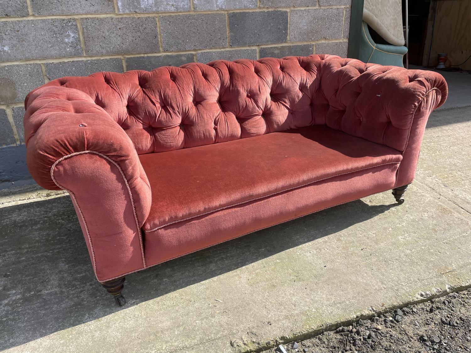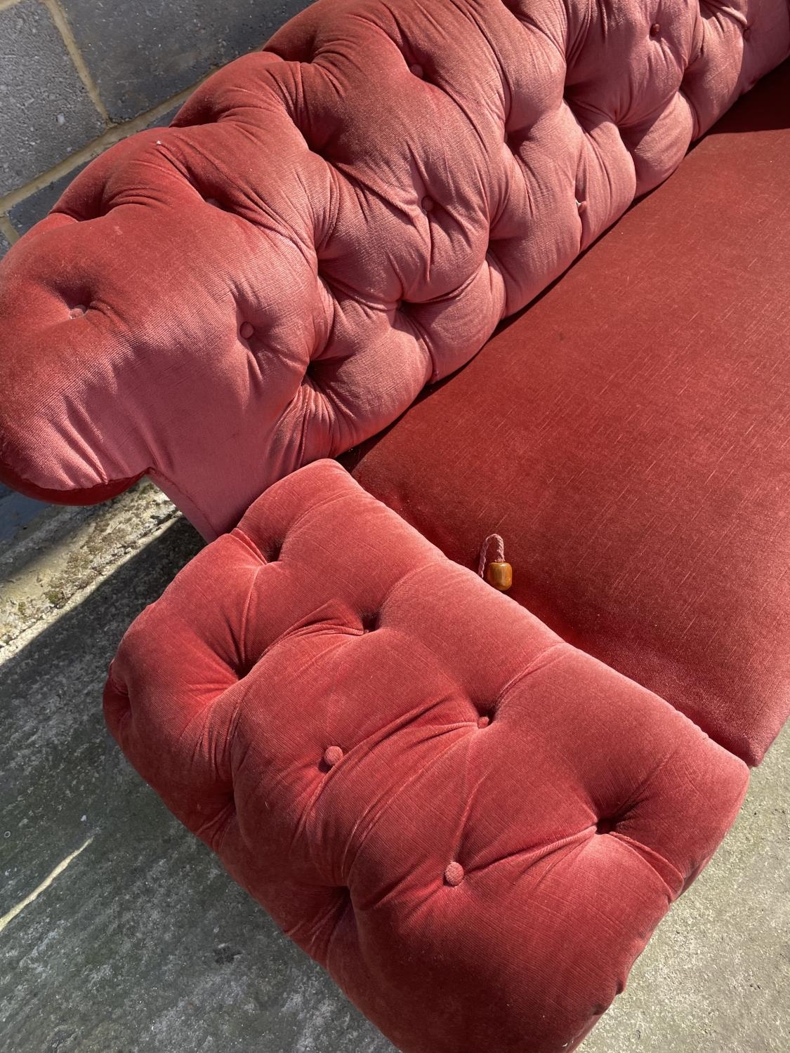 An Edwardian pink buttoned back chesterfield sofa 185cm wide