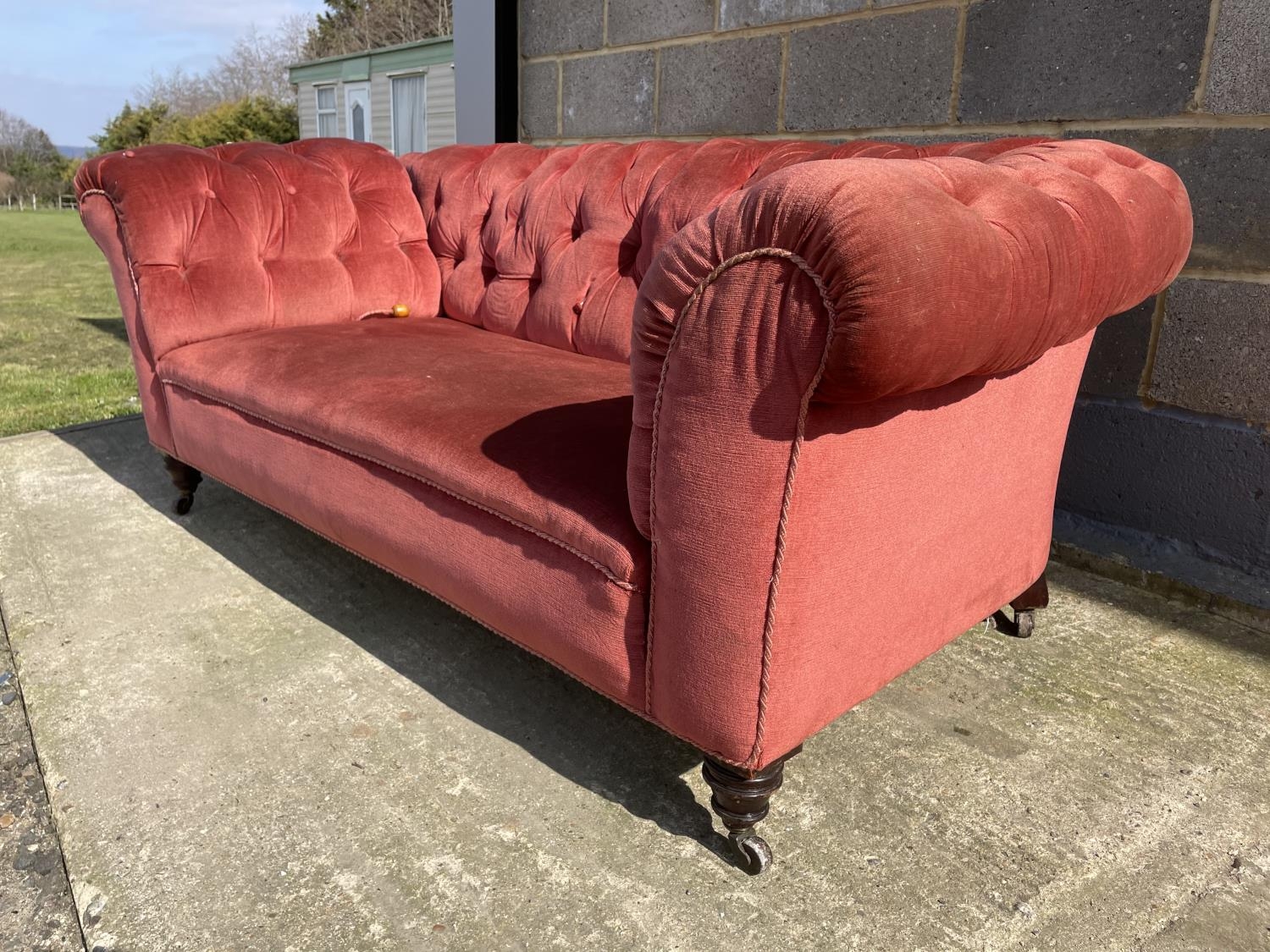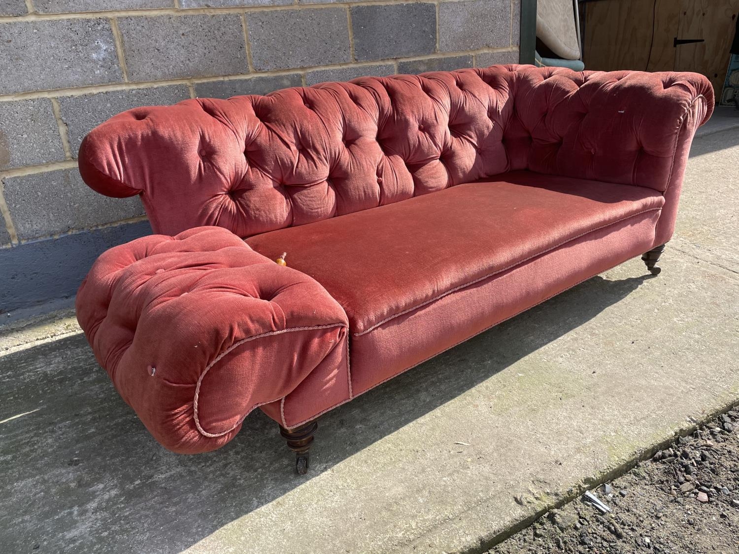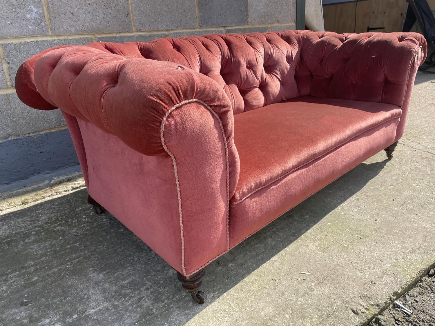 An Edwardian pink buttoned back chesterfield sofa 185cm wide