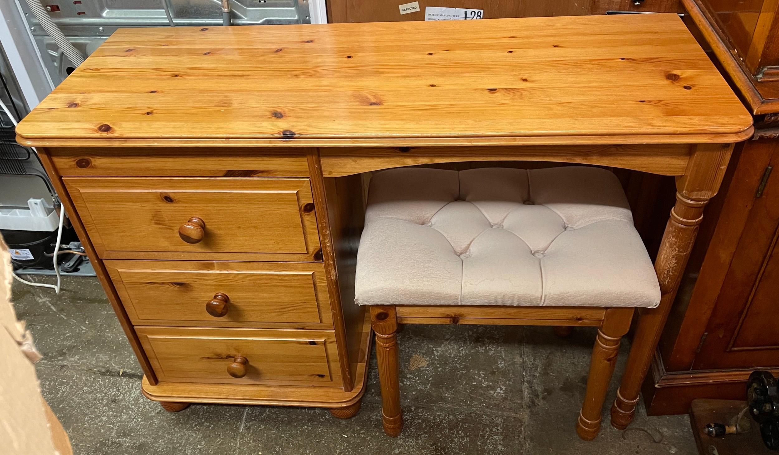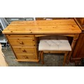 PINE KNEEHOLE DRESSING TABLE AND STOOL